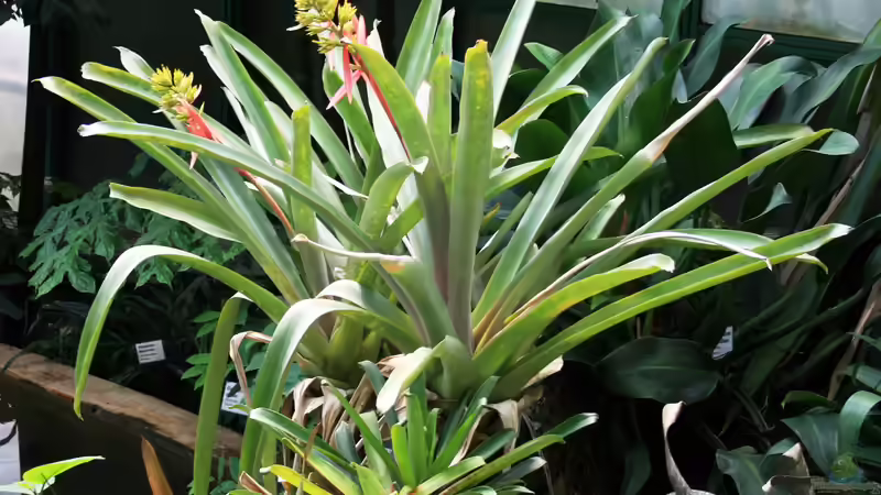 1. Bromelien (Bromeliaceae): Bromelien sind farbenfrohe und ungewöhnliche Pflanzen, die perfekt in Terrarien passen. Diese epiphytischen Pflanzen benötigen wenig Wurzelraum und können auf verschiedenen Oberflächen wie Ästen oder Steinen wachsen. Sie verleihen dem Terrarium eine tropische Atmosphäre und benötigen nicht viel Pflege. Einige beliebte Sorten sind die Tillandsien, die keine Erde benötigen, und die Guzmanias mit ihren leuchtenden Blütenständen.