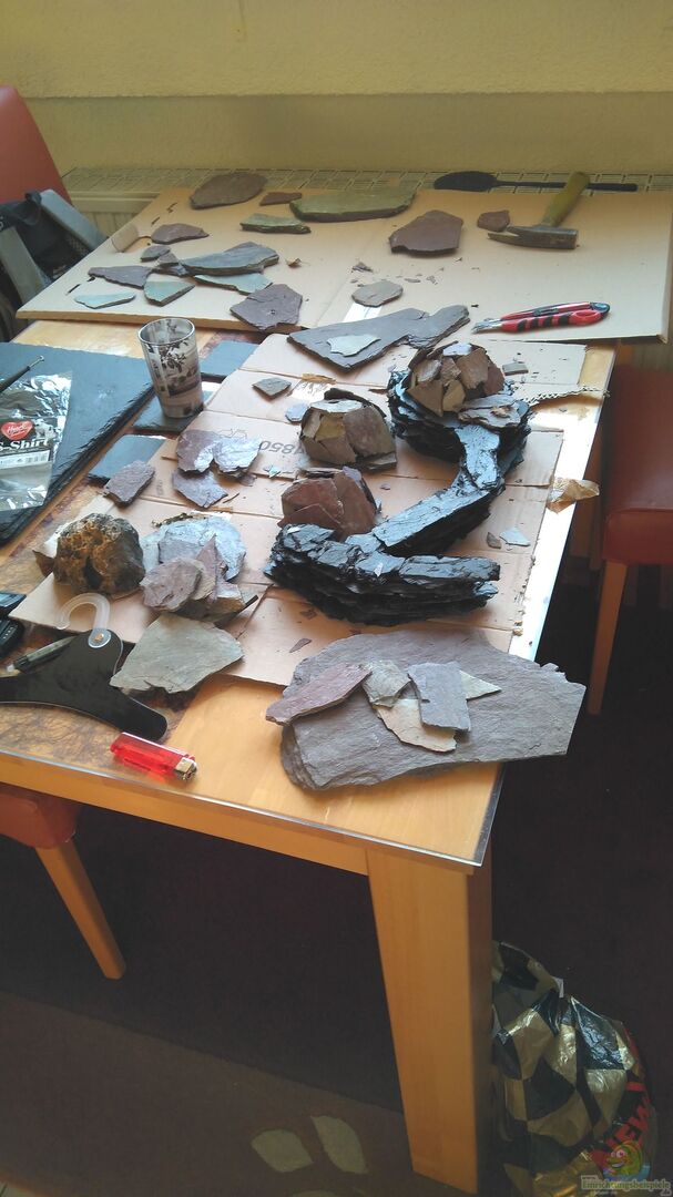 Mit Schiefer lassen sich außerdem sehr einfach Höhlen in allen erdenklichen Größen bauen, die unter anderem auch von L-Welsen als Laichhöhlen angenommen werden. Es sollte bei solchen "Hochbauten" auf alle Fälle beachtet werden, dass die Schiefersteine so gestapelt werden müssen, dass ein Einstürzen verhindert wird.