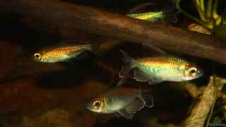 Salmler aus der Familie der Characidae, die im Handel angeboten werden, sind zumeist Schwarmfische, die sich in einer Einzelhaltung überhaupt nicht wohl fühlen. In Schwärmen ab 10 Tieren oder besser noch mehr, sollten sie in Aquarien gehalten werden, die viel Platz und freien Schwimmraum für diese agilen Aquarienfische bieten. Neben dem Schwimmraum sollte das Aquarium aber auch Zonen mit dichter Bepflanzung und Versteckmöglichkeiten etwa in Form von Moorkienwurzeln bieten.