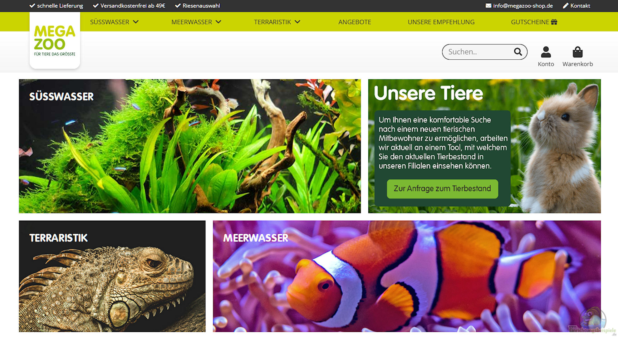 Der Onlineshop unter www.Megazoo-shop.de bietet ein umfangreiches Sortiment für die Aquaristik und die Terraristik.