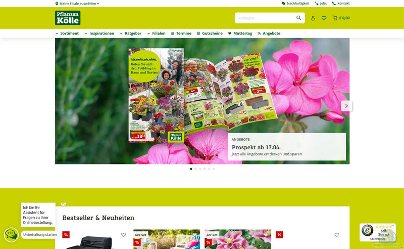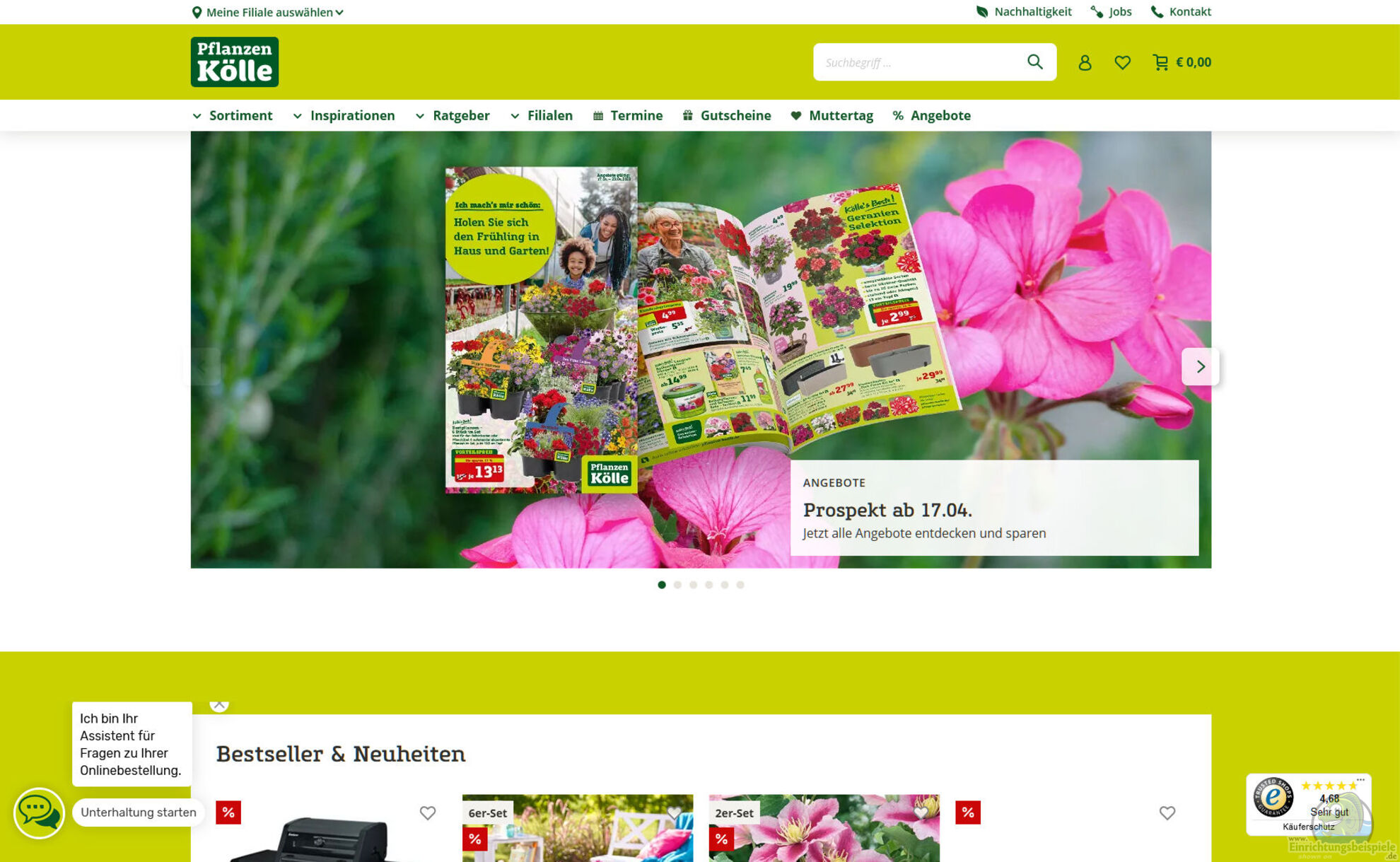Pflanzen Kölle ist auch online präsent und betreibt einen Onlineshop, in dem Kunden Pflanzen und Gartenbedarf kaufen können. Der Onlineshop bietet eine große Auswahl an Produkten und eine einfache Bestellabwicklung, die es den Kunden ermöglicht, ihre Bestellung bequem von zu Hause aus aufzugeben. Im Shop sind auch Produkte aus dem Bereich Zoo, inkl. Aquaristik und Gartenteich bestellbar.