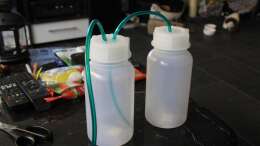 Das hängt von der Flaschengröße und der Blasenzahl ab. Eine 500 g Flasche bei 1 Blase pro Sekunde kann etwa 6–8 Wochen halten.