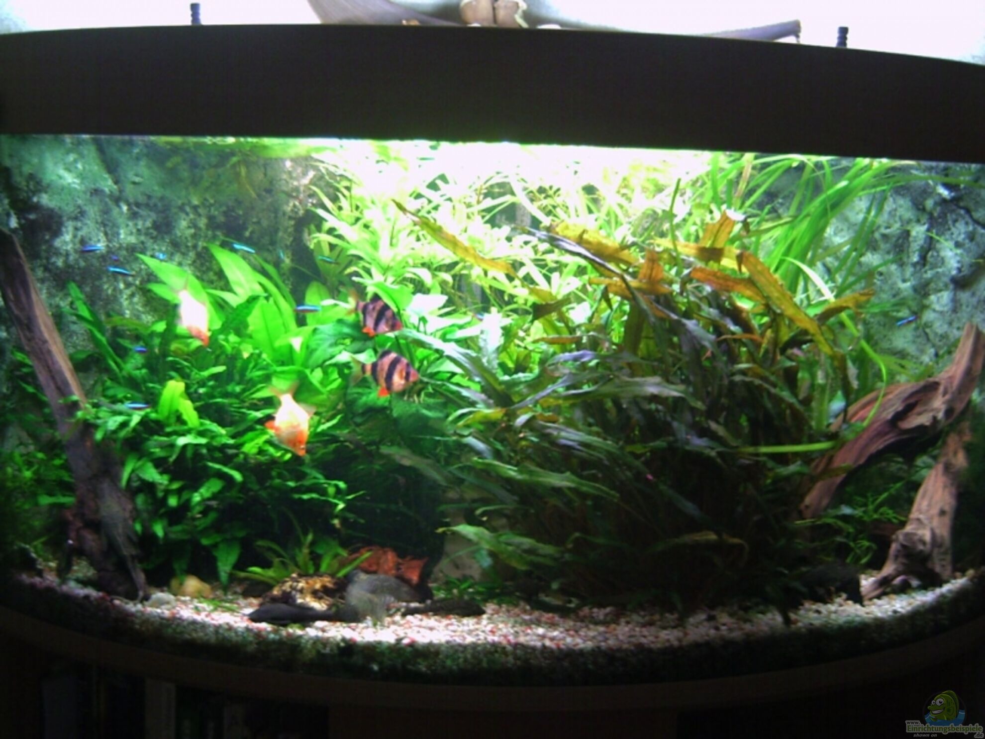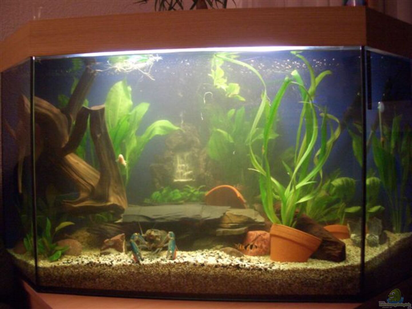 Ein Eckaquarium hat den Vorteil, das es auf relativ wenig Raum eine große Grundfläche und Beckentiefe bietet, die sehr gut für die Gestaltung des Aquariums genutzt werden kann.