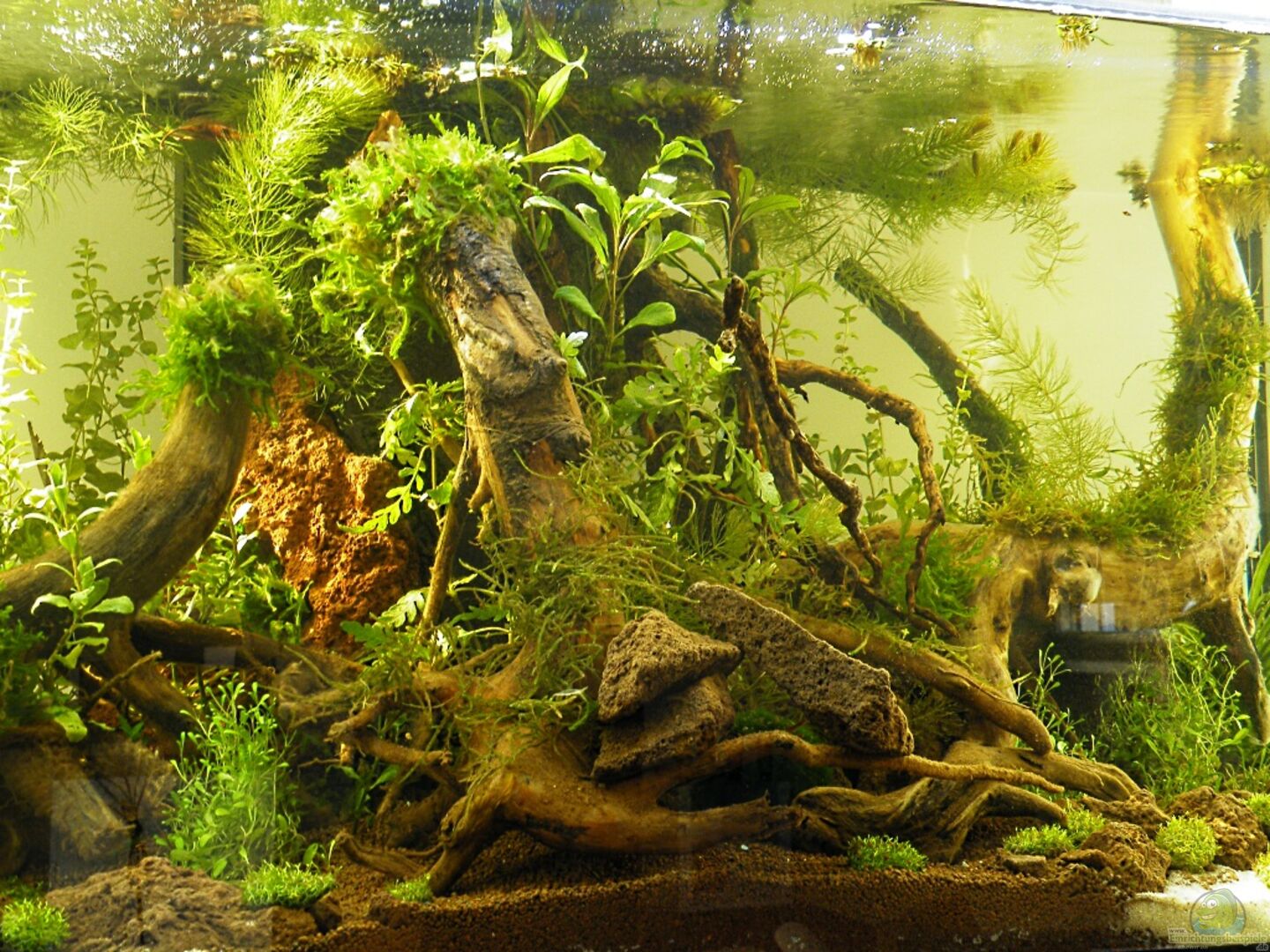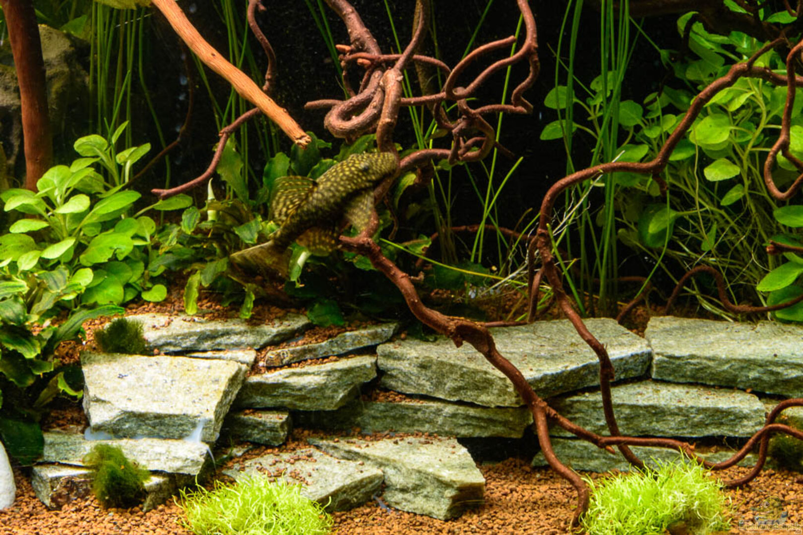 Um einen HMF im Aquarium besser aussehen zu lassen, eignet sich die Bepflanzung mit Moos, die seine Funktionsfähigkeit nicht einschränkt.