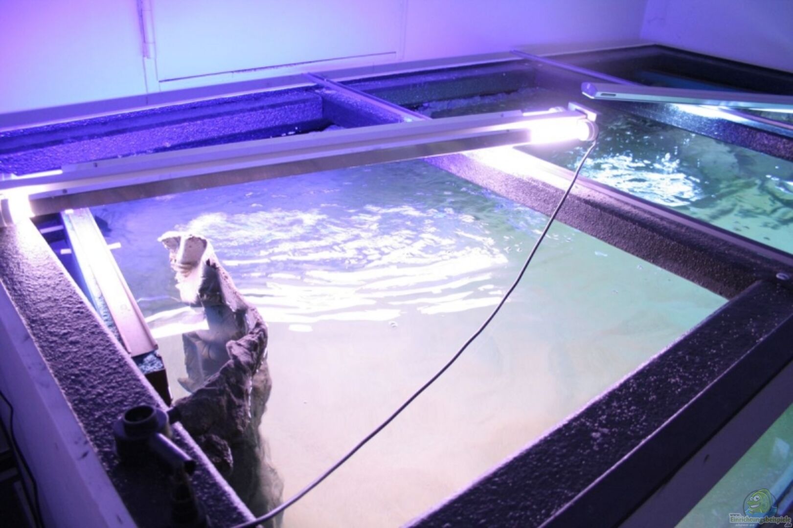 Die Pumpe wird so gewählt, dass sie das Aquarium 2x in der Stunde umwälzt. Für ein Aquarium mit 450 Liter Volumen also eine Pumpe, die 900 Liter in der Stunde fördert.