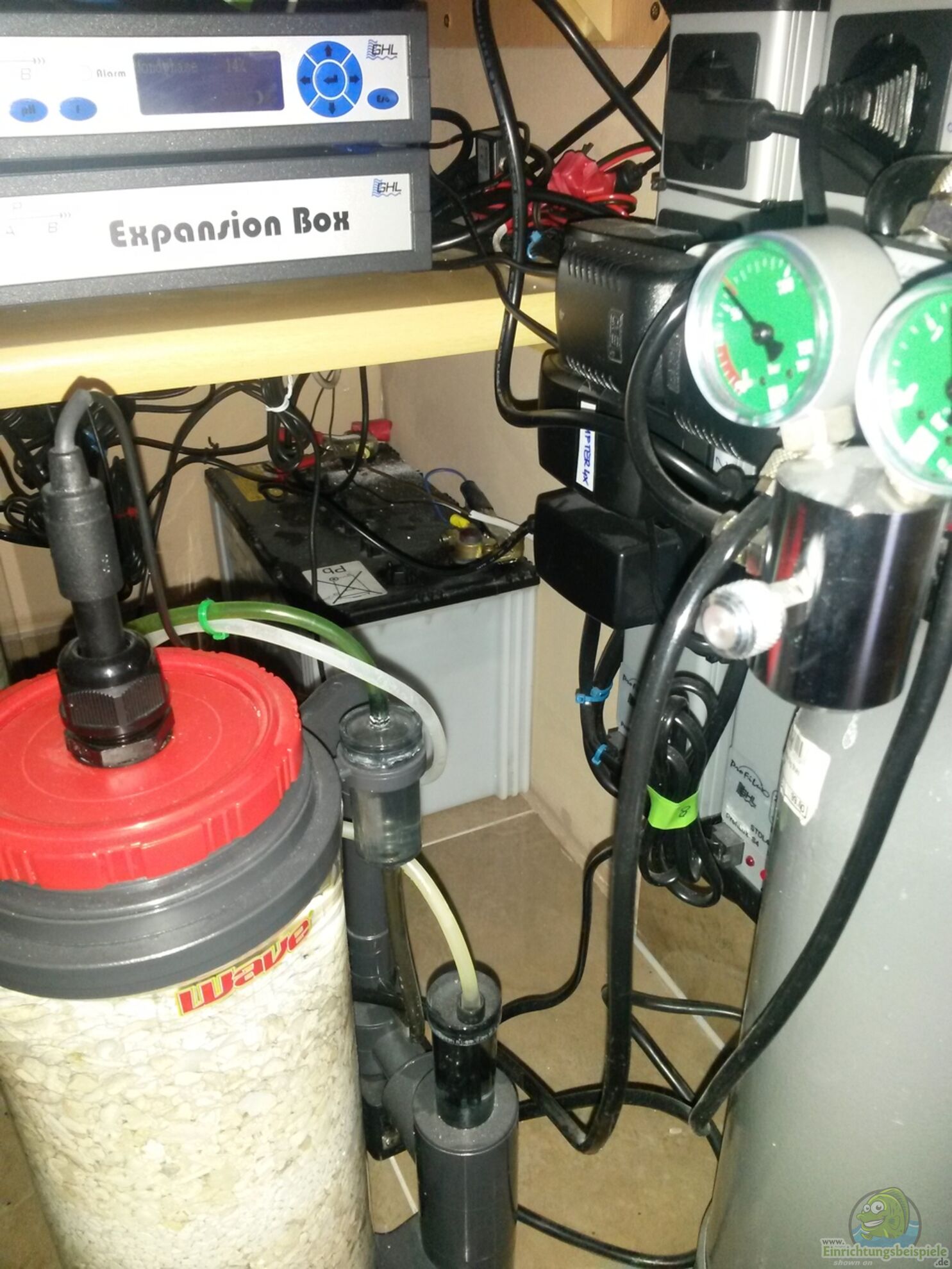 - CO2-System: Eine Gasflasche, ein Druckminderer und ein Magnetventil steuern die CO2-Zufuhr.