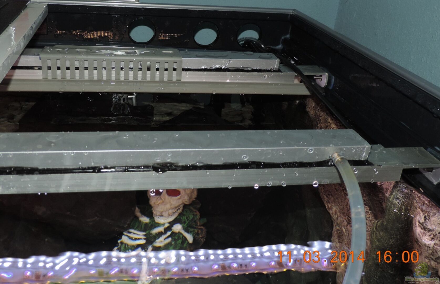 Grundsätzlich sollte das Aquarium an einem möglichst kühlen Ort aufgestellt werden, wo direkte Sonneneinstrahlung das Aquarium nicht aufheizen kann.