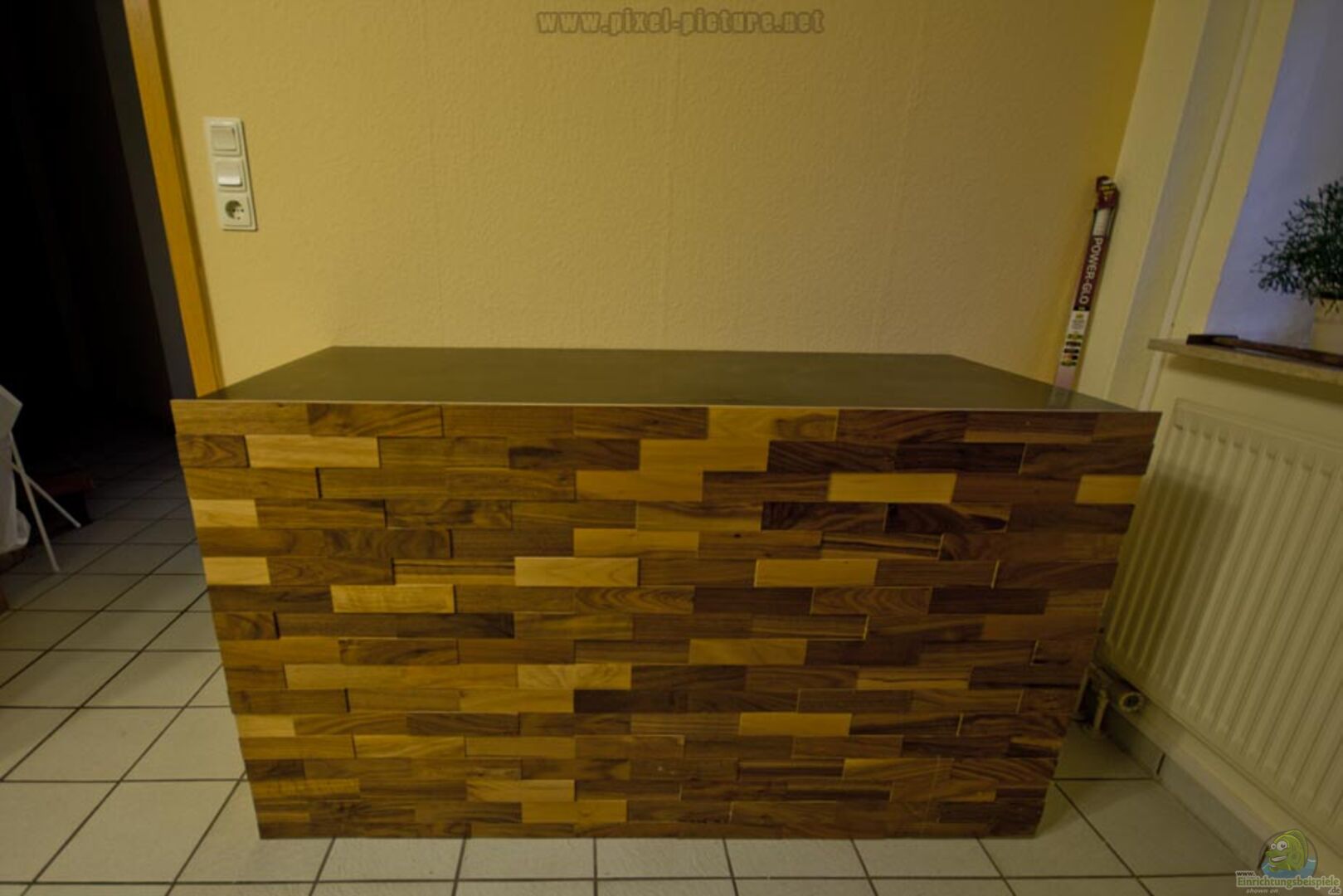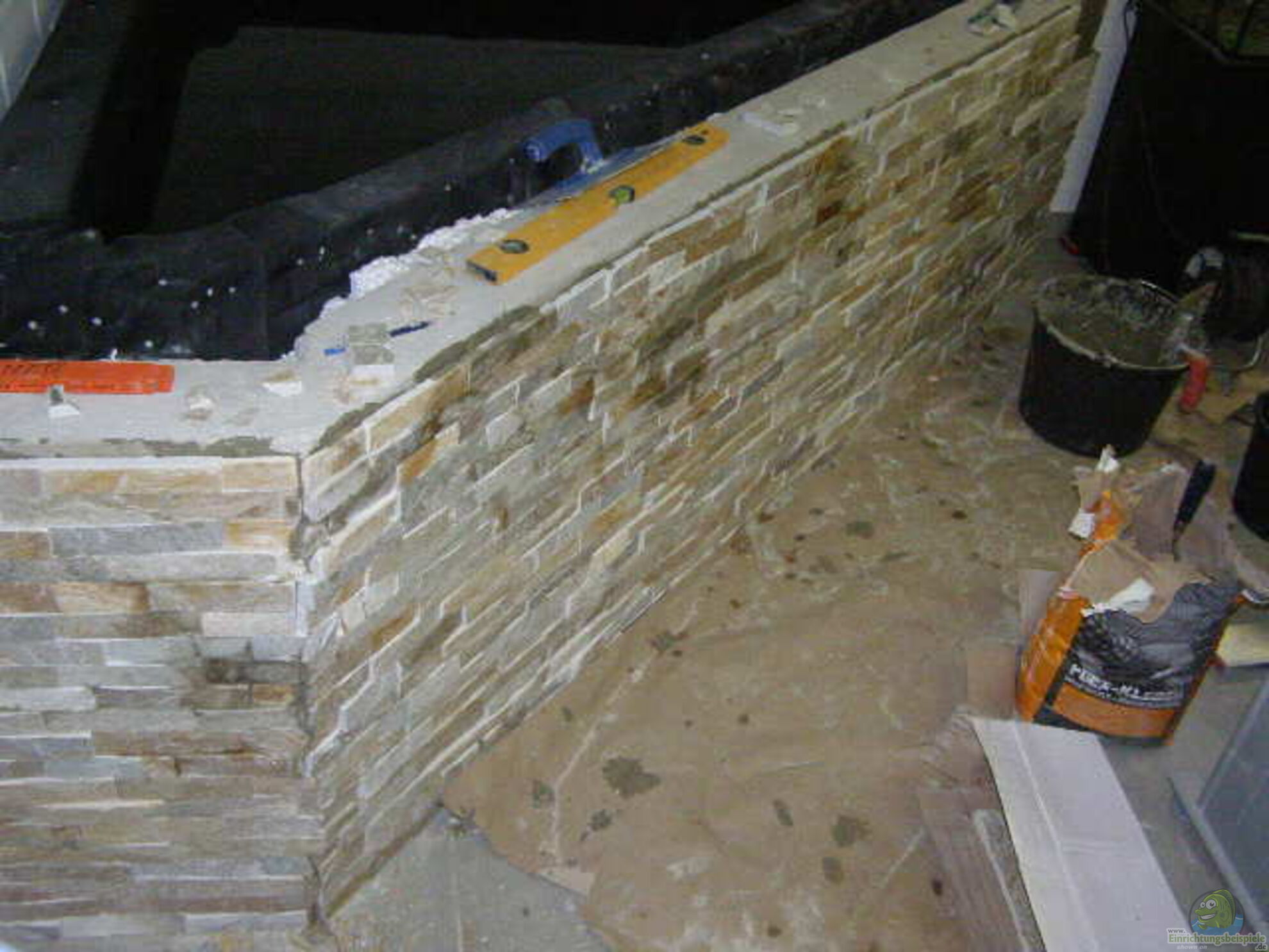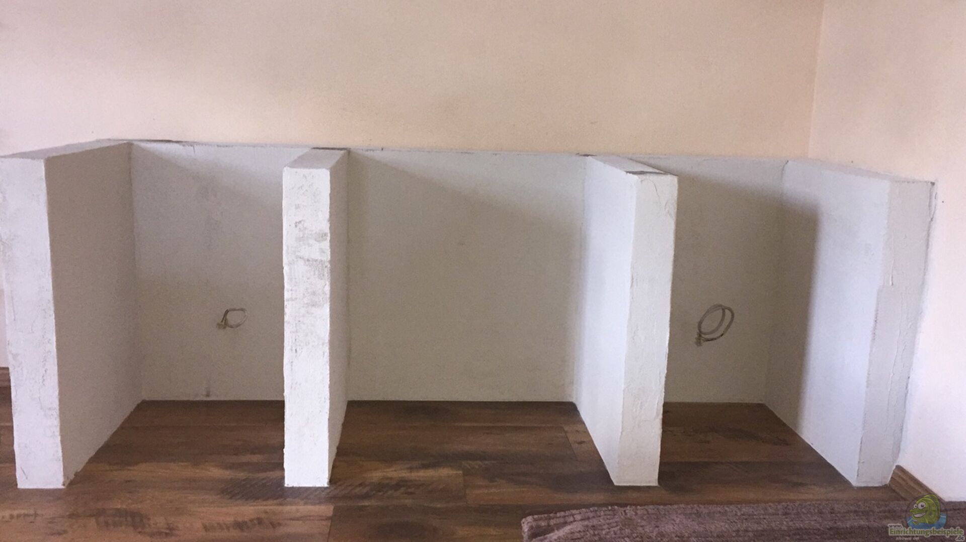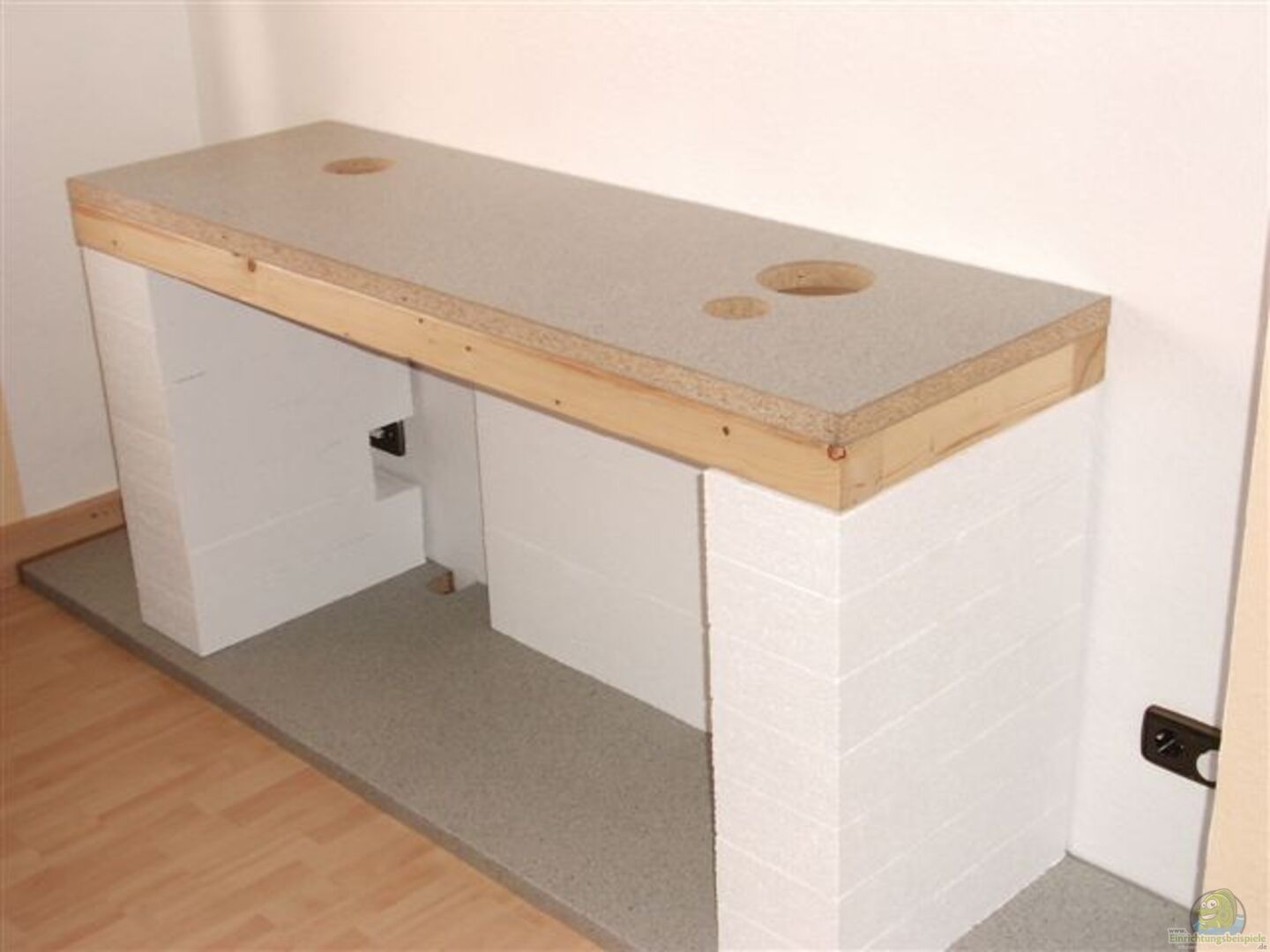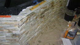 Ytong kann dabei verklebt werden. Es ist aber auch möglich, die Steine ohne eine Verklebung auf der breiten Seite aufzustapeln. Das Gewicht des Aquariums sorgt dann für die nötige Stabilität.