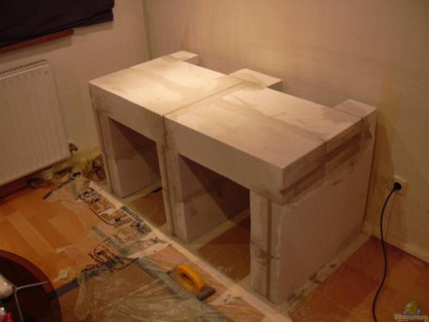 Die Steine aus Porenbeton können auch als Aquarienunterbau verarbeitet werden, um einen Schrank aus dem Aquarienfachhandel zu ersetzen. Besonders gefragt sind solche Lösungen dort, wo es sich um Beckenabmessungen aus dem Aquarienbau handelt, für die ein solcher Standardunterschrank überhaupt nicht angeboten wird.