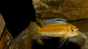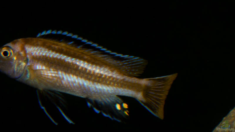 Der M. johannii [jetzt "Pseudotropheus" - diese ständige Umbenennung macht einen das Leben als Aquarianer nicht angenehmer], der überwiegend in der Felsregion des See"s lebt, ist ein farbenprächtiger Mbuna, der als Jungtier "gelb" und später ins blau/weiss - schwarze über geht. Er entwickelt hinterm Kopf dunkle, waagerechte Streifen, die bis zur Schwanzflosse gehen und dort farblich ausstrahlen. Seine Kopfzeichnung zieht sich quer über den vorderen Bereich. Erstaunlich aber finden wir den Weg dorthin.