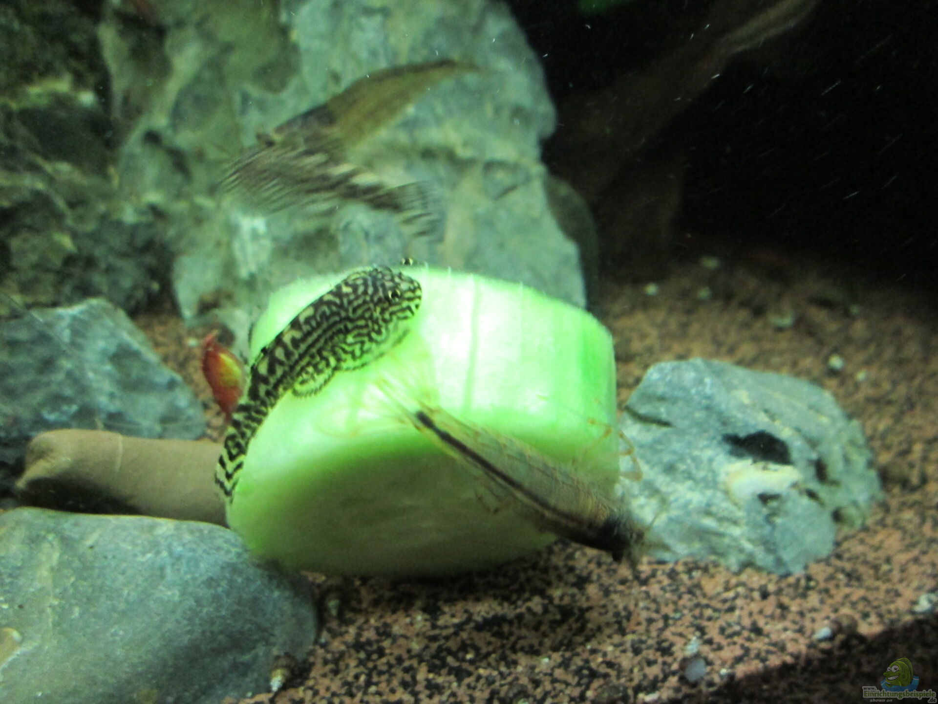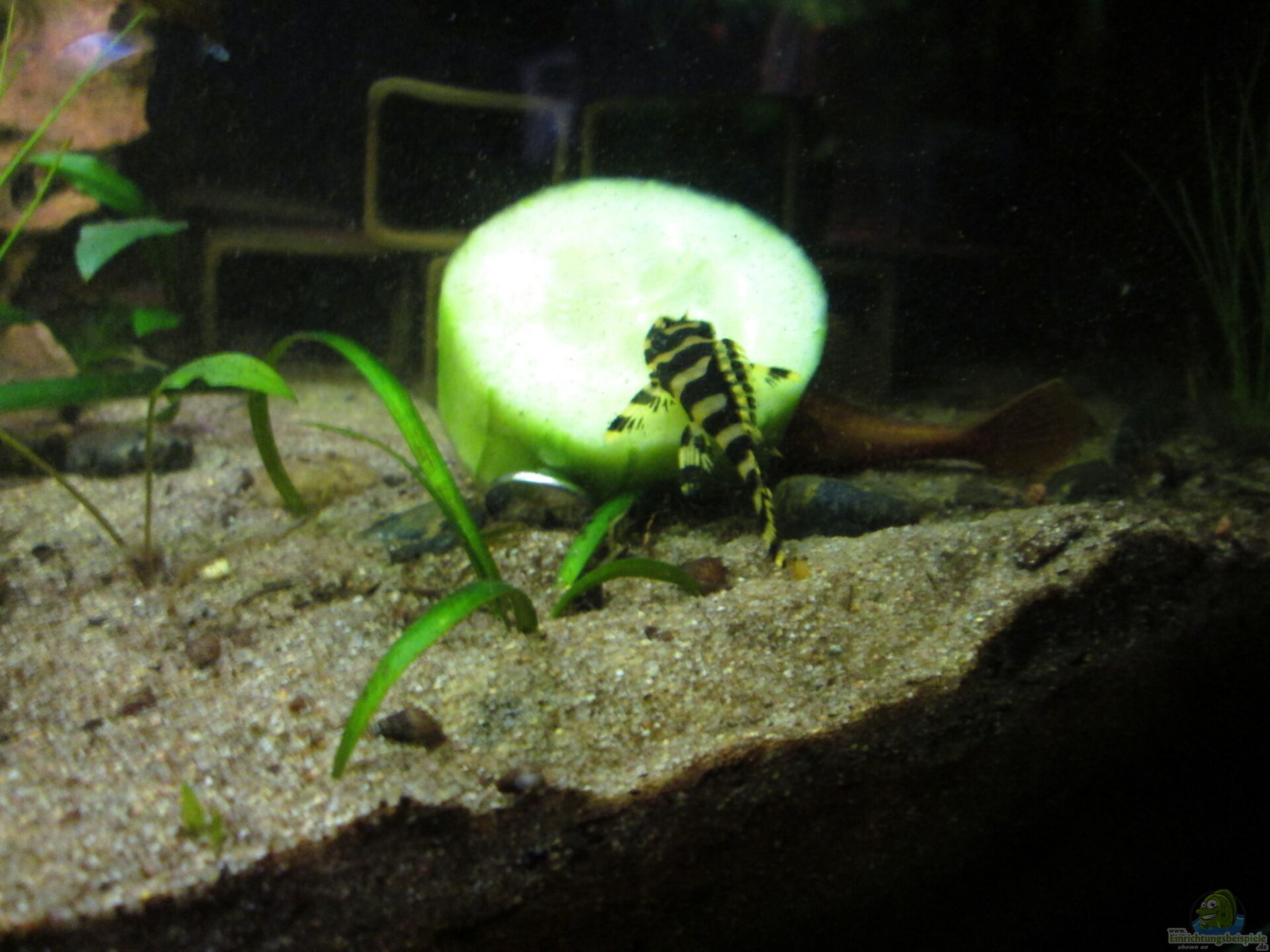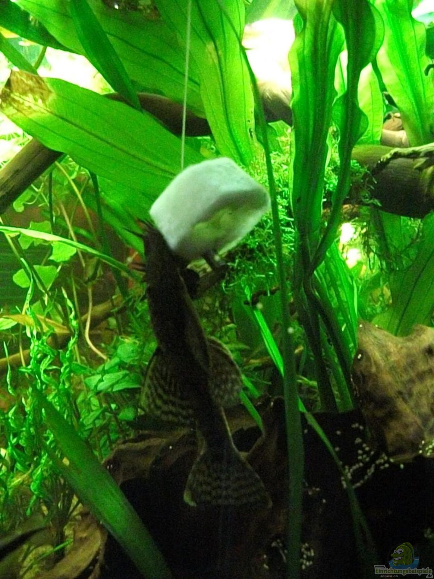 Um speziell die Ancistrus und L-134 zu fordern und den gemeinsamen Spieltrieb von Mensch und Tier zu fördern lasse ich die Haken auch gerne in der Beckenmitte baumeln.