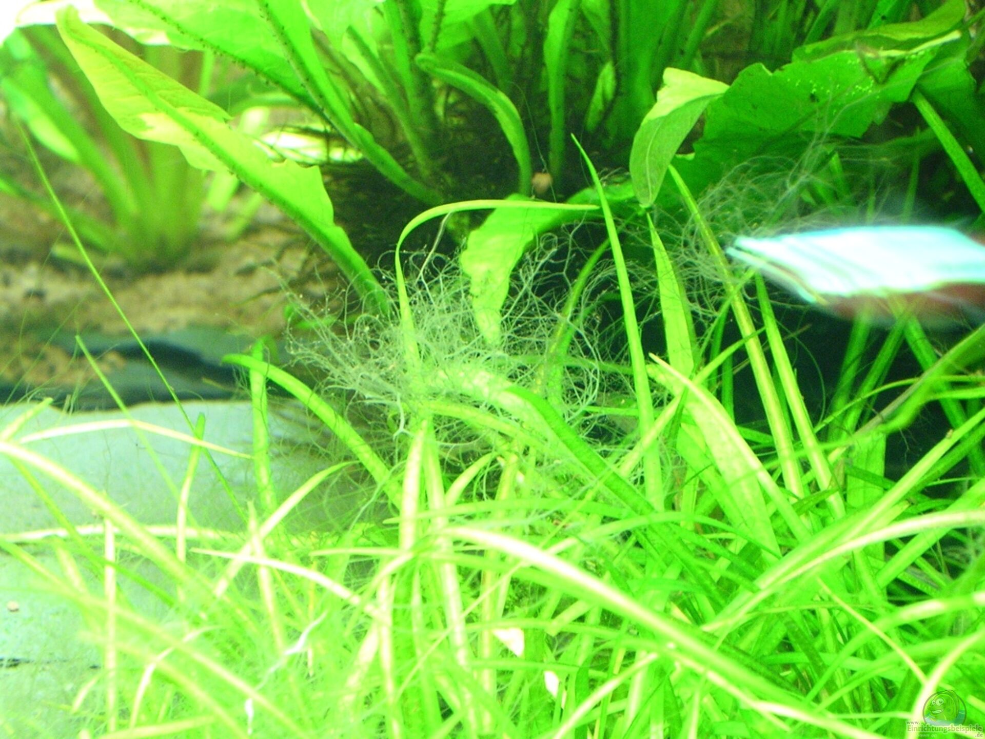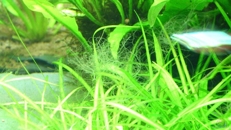 25.09.2011 - Erste Erfolge!!! Ich denke die Schwimmpflanzen haben einen gro??en Beitrag geleistet. Die Fadenalgen treten innerhalb nicht mehr in Büscheln auf, sondern nur noch einzelne Fäden. Auch die Bartalgen hab ich einigermassen im Griff. Allerdings hatte ich auch fast jeden Tag die Finger im Wasser, um befallene Blätter zu entfernen.