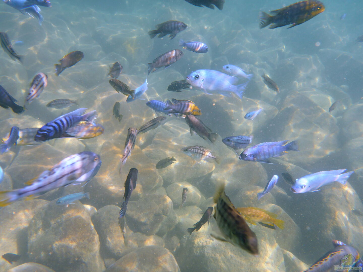 Im LMNP findet man einige wichtige Lebensräume für Chichliden: das Felslitoral, kleine, geschützte Buchten, die Fels-Sand-Zone bis hin zu ausgedehnten Sandflächen, z.T. mit großen Vallisnerienfeldern. Im ufernahen Freiwasser findet man die typischen Vertreter der Utaka-Gruppe (Copadichromis), das uferferne Freiwasser habe ich mal Usipa, der Seesardelle, und den Fischern überlassen. In ihm kommen etwa 300 Cichlidenarten vor (Konings, 2015). Zugleich dient er als Laichplatz für zahlreiche Utakas und entlässt große Jungfischschwärme in den See.