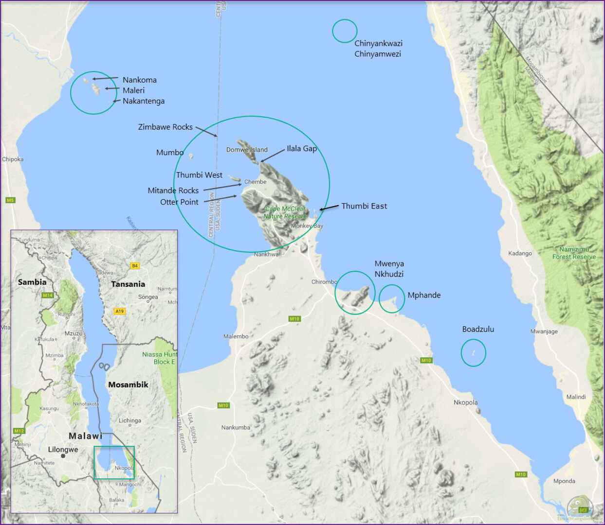 … eingerichtet und seit 1984 auf der Liste des UNESCO-Weltnaturerbe geführt. Er liegt im Südteil des Sees und umfasst mit einer Fläche von 90 km2 den nördlichen Teil der Nankhumba-Halbinsel. Geschützt sind große Teile des bewaldeten Berglandes der Halbinsel sowie Ihrer Küstenlinie und der vorgelagerter Inseln. Dazu gehören u.a. im Westen Maleri, Mumbo, Domwe, Thumbi West und Otter Point, östlich der Halbinsel Boadzulu und Thumbi East. Alles klangvolle Namen, von denen dem interessierten ‚Malawianer‘ sicherlich einige bekannt vorkommen.