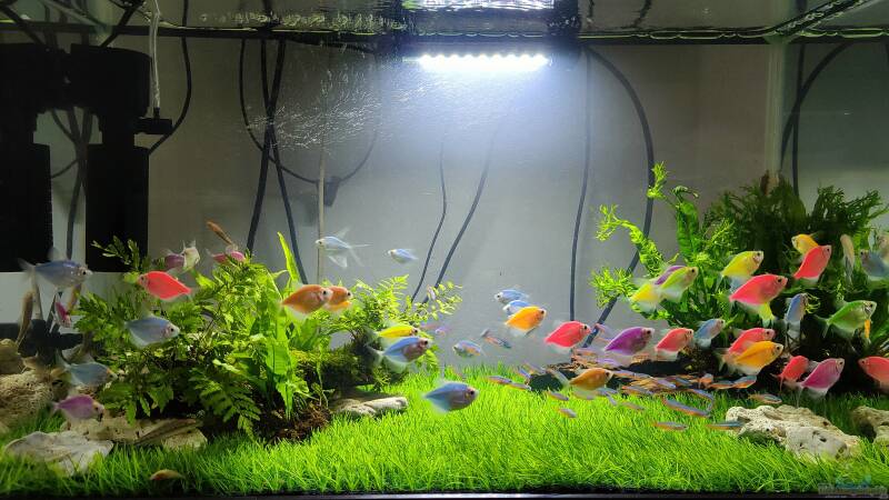 Ein wöchentlicher Wasserwechsel (30-50 %) sowie regelmäßiges Zurückschneiden der Pflanzen sind optimal.