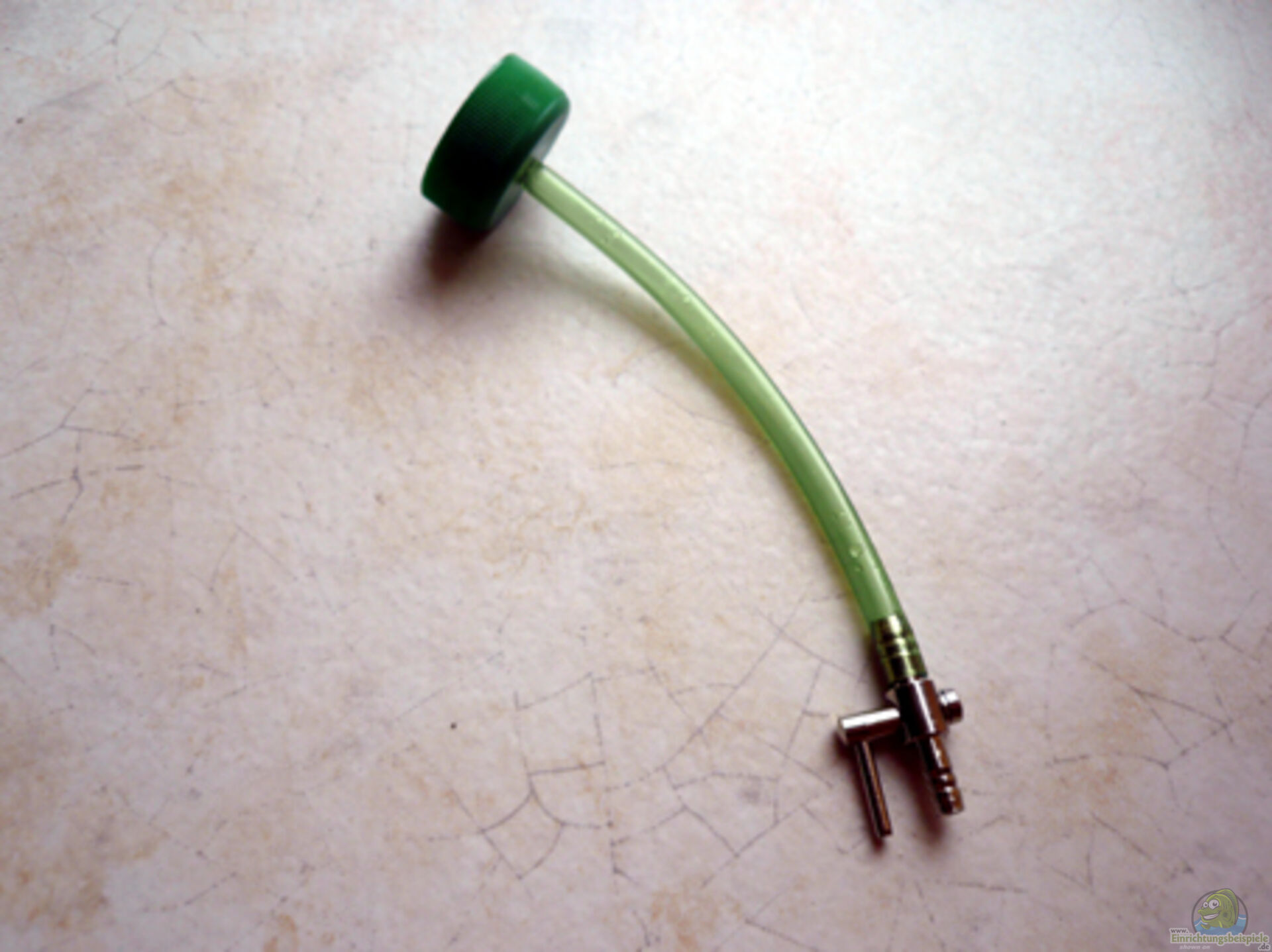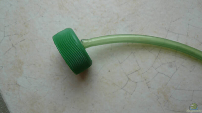 Schritt 5: Auf den Schlauch steckt man nun den Verschluss ( Bild 2) und schraubt den Deckel auf die Flasche.