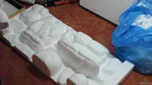 ??? die freistehenden Steine werden nun von unten heraus ausgehöhlt, das gesamte Styropor wird herausgekratzt