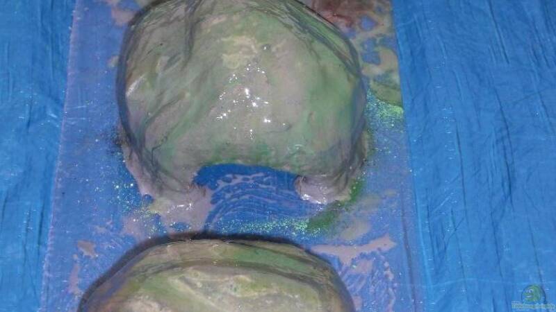 an einem Stein hat sich innen etwas Epoxidharz gelöst, an der Stelle war es sehr dünn, Grund ist wohl dass beim auftragen das meiste weg gelaufen war bevor es trocknen konnte, Ausbesserung ist aber problemlos gewesen,