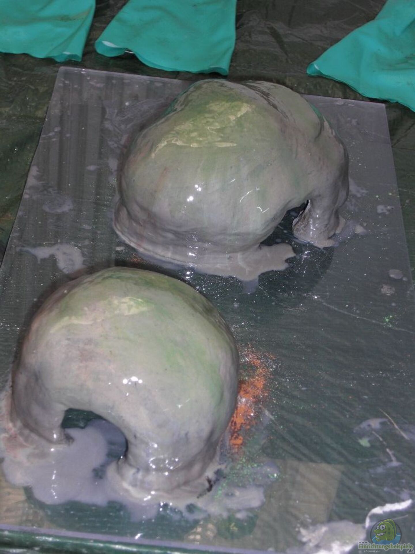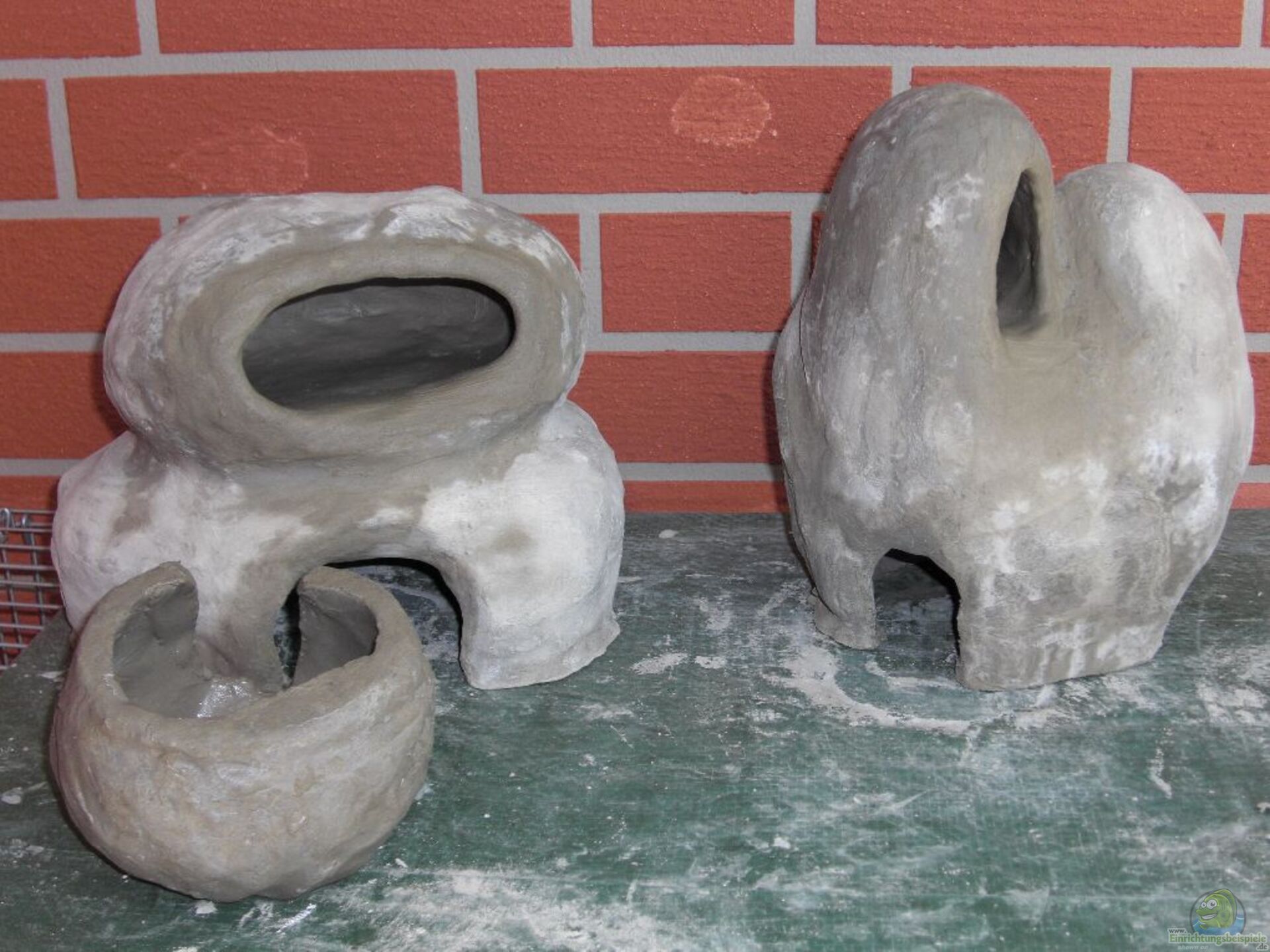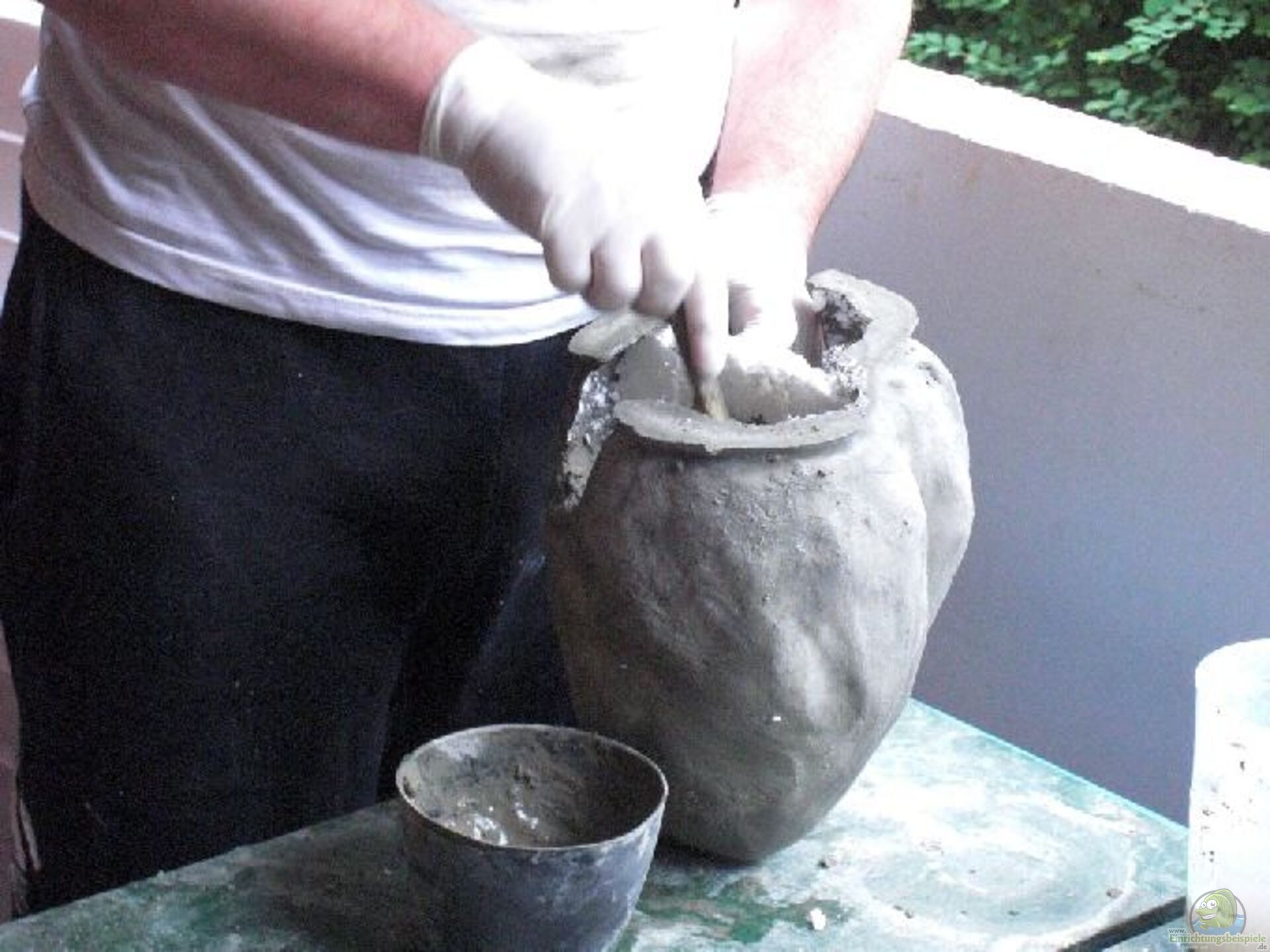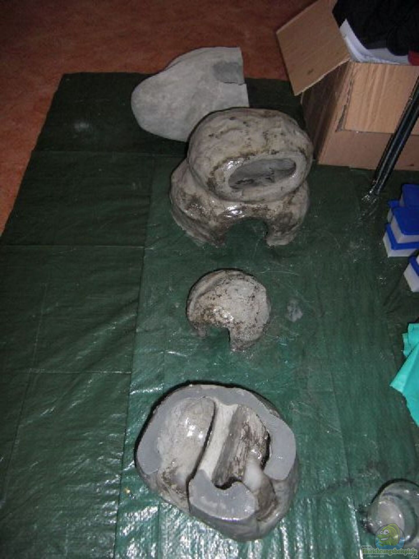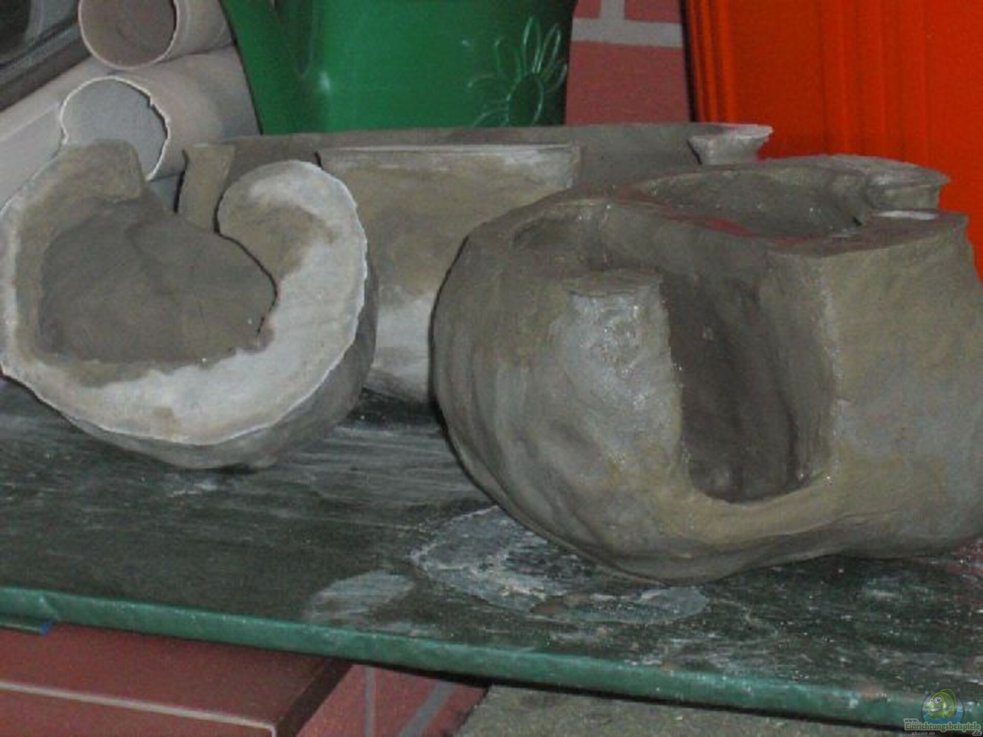 ??? bei den freistehenden Steinen nur auf die Oberseite Zement auftragen, die Unterseite sowie ein Höhleneingang bleiben komplett frei von Zement