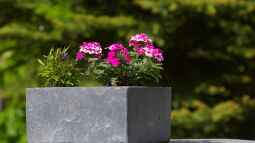 - Große, geometrische Pflanzkübel aus Beton oder Glasfaser.