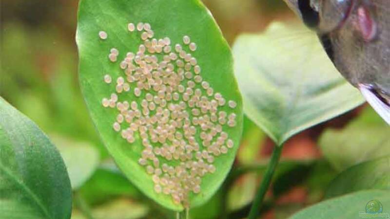 Die Eier werden offen abgelegt, meistens auf einem zuvor gründlich gereinigten Substrat. Das kann ein Blatt, ein Stein oder die Aquarienscheibe sein.