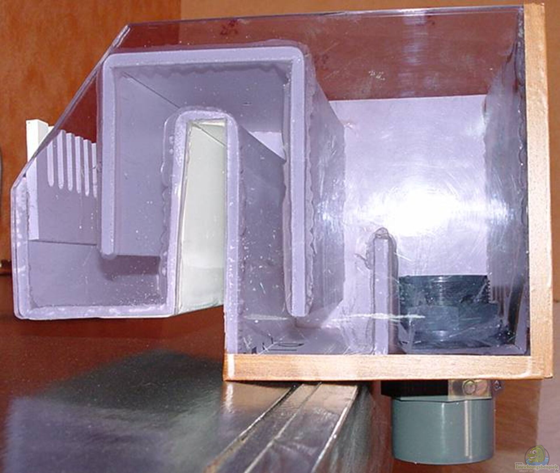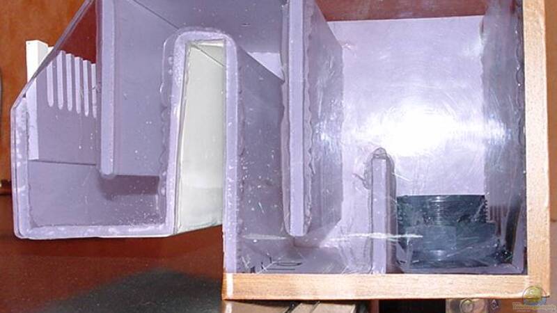 der ??berlauf ist stabiler an der Sichtseite habe ich Getöntes Plexiglas verwendet was ich noch liegen hatte , so kann man immer sehen ob sich etwas in den ??berlauf verirrt hat neue Bilder folgen