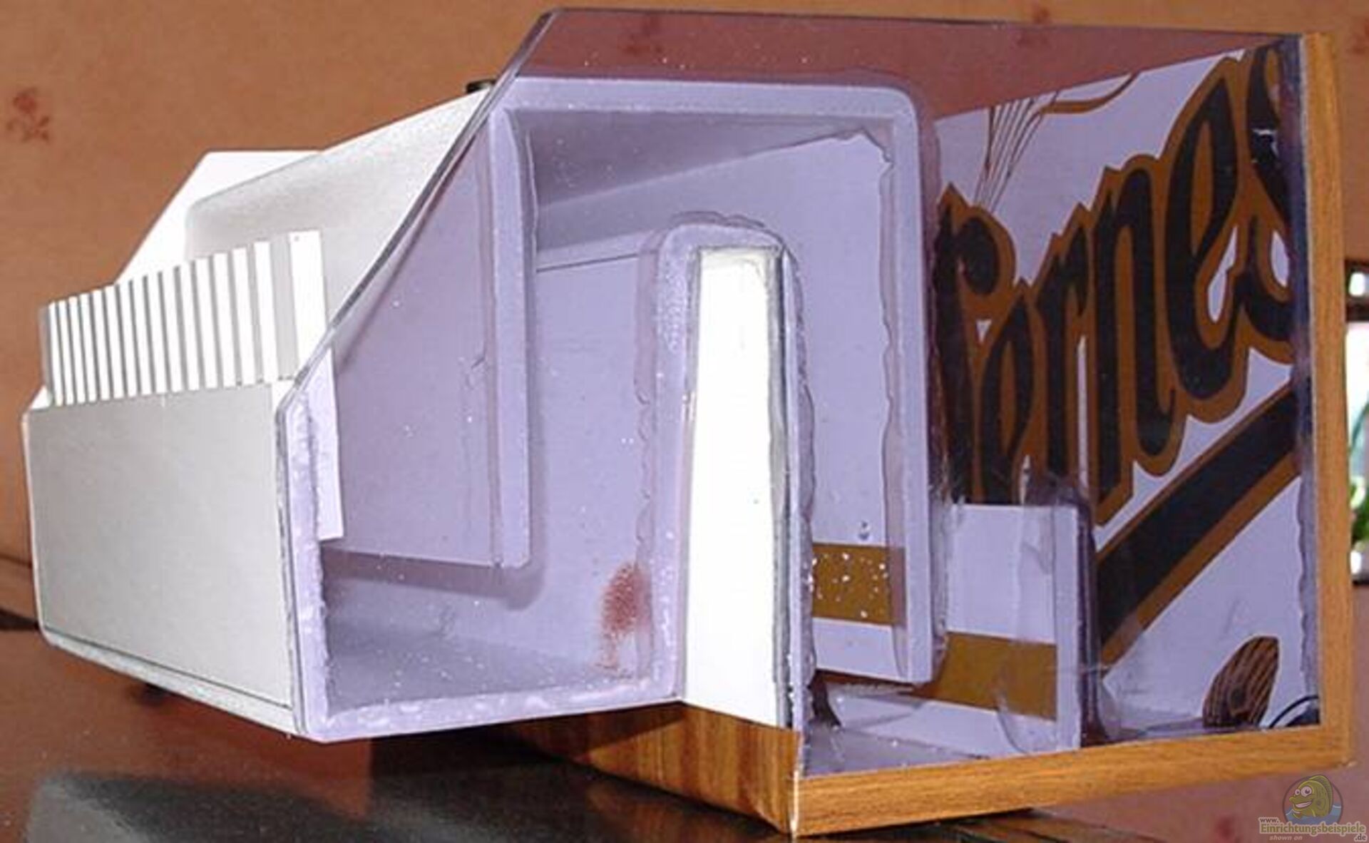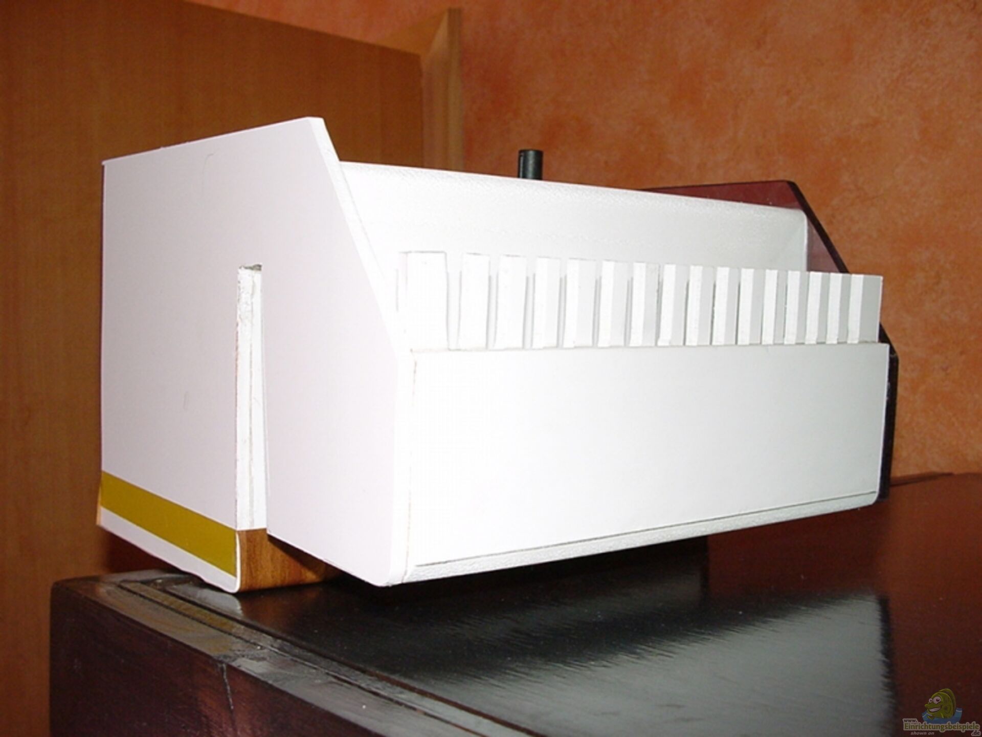 das ist nur ein Prototip jetzt wird noch einer in braun gebaut damit er besser zum Aquarium passt