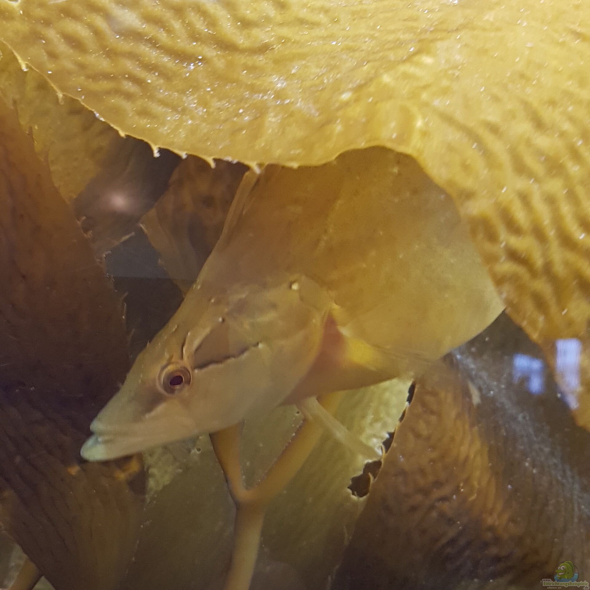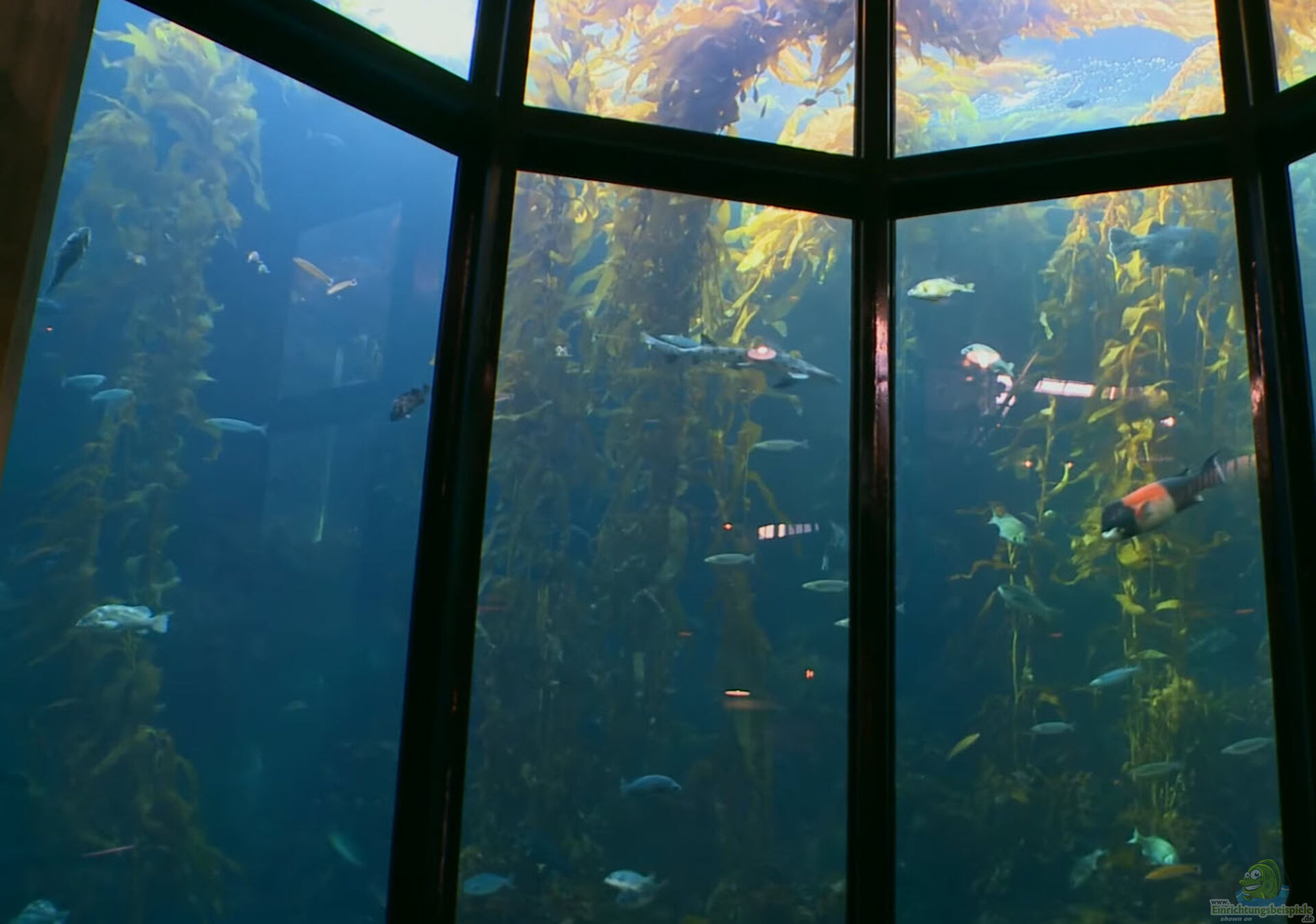 Kaum weniger eindrucksvoll das "open sea" Becken ist der Kelp-forrest, ein sich in der Höhe über 2 Etagen erstreckendes Gro??aquarium mit Pflanzen und Fischen aus der Bay. So zum Beispiel der gro??e Kelpfisch, der im Algendschungel kaum zu erkennen ist.