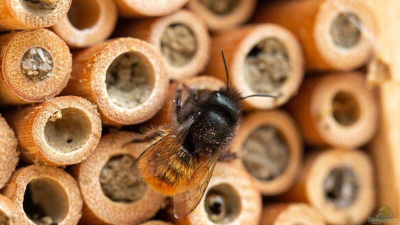 Andere Wildbienenarten überwintern in Pflanzenstängeln, hohlen Zweigen oder unter Laub. Solche Verstecke bieten natürlichen Schutz vor winterlichen Bedingungen.