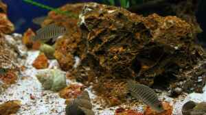 Am heutigen vierten Tag die ich diese kleinen Buntbarsche jetzt pflege bleibt festzuhalten das sich die Grabaktivitäten mehr auf das schaffen von Höhlen unter dem Gestein beziehen, die Schneckenhäuser werden nur sporadisch angeschwommen wobei ich mir nicht sicher bin ob ein Pärchen nicht schon abgelaicht hat ;-)