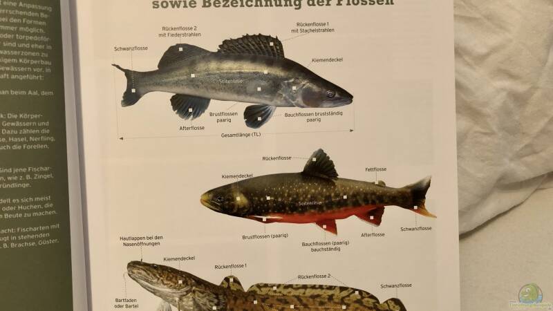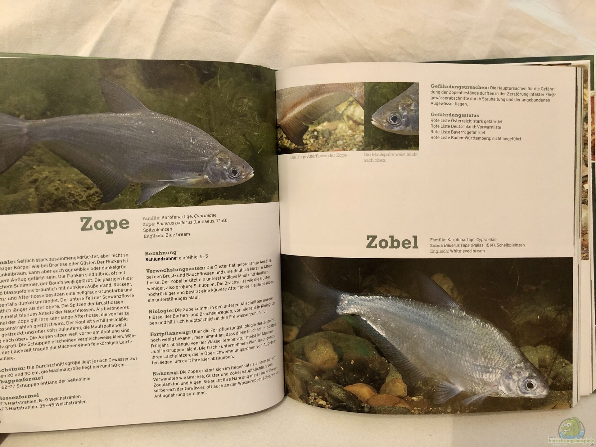 Von Stören (und Verwandten) sind neun Arten im Buch aufgezählt, von Forellen (und Verwandten) sind elf Arten beschrieben und bei den Karpfen (samt Verwandten) sind es über 40. Dann folgen die Barsche usw.