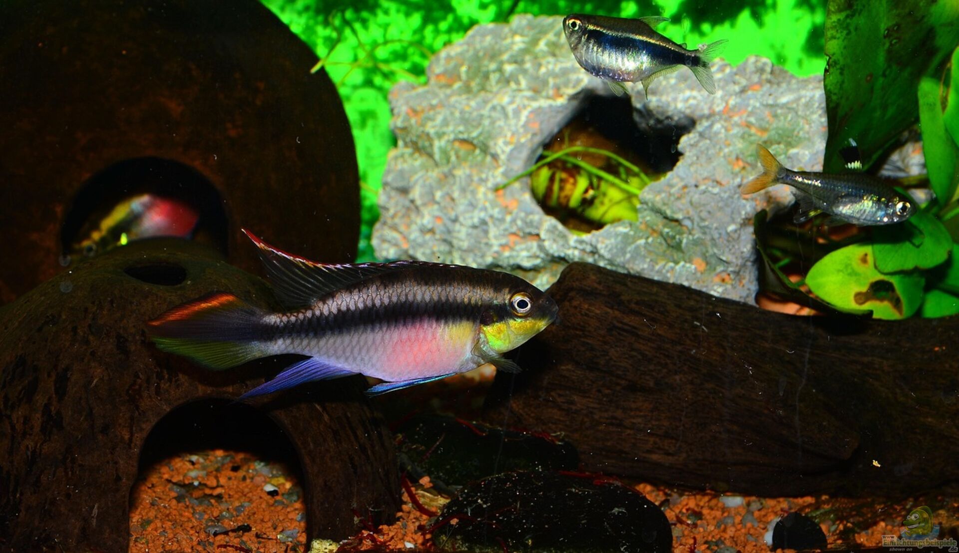 Die Beckengröße hängt stark von der Art ab. Kleinere Arten wie Pelvicachromis kommen bereits in Aquarien ab etwa 80 bis 100 Zentimetern Kantenlänge gut zurecht, während größere und territorialere Arten deutlich mehr Platz benötigen. Wichtig ist, dass das Becken nicht nur groß genug ist, sondern auch sinnvoll eingerichtet wird.