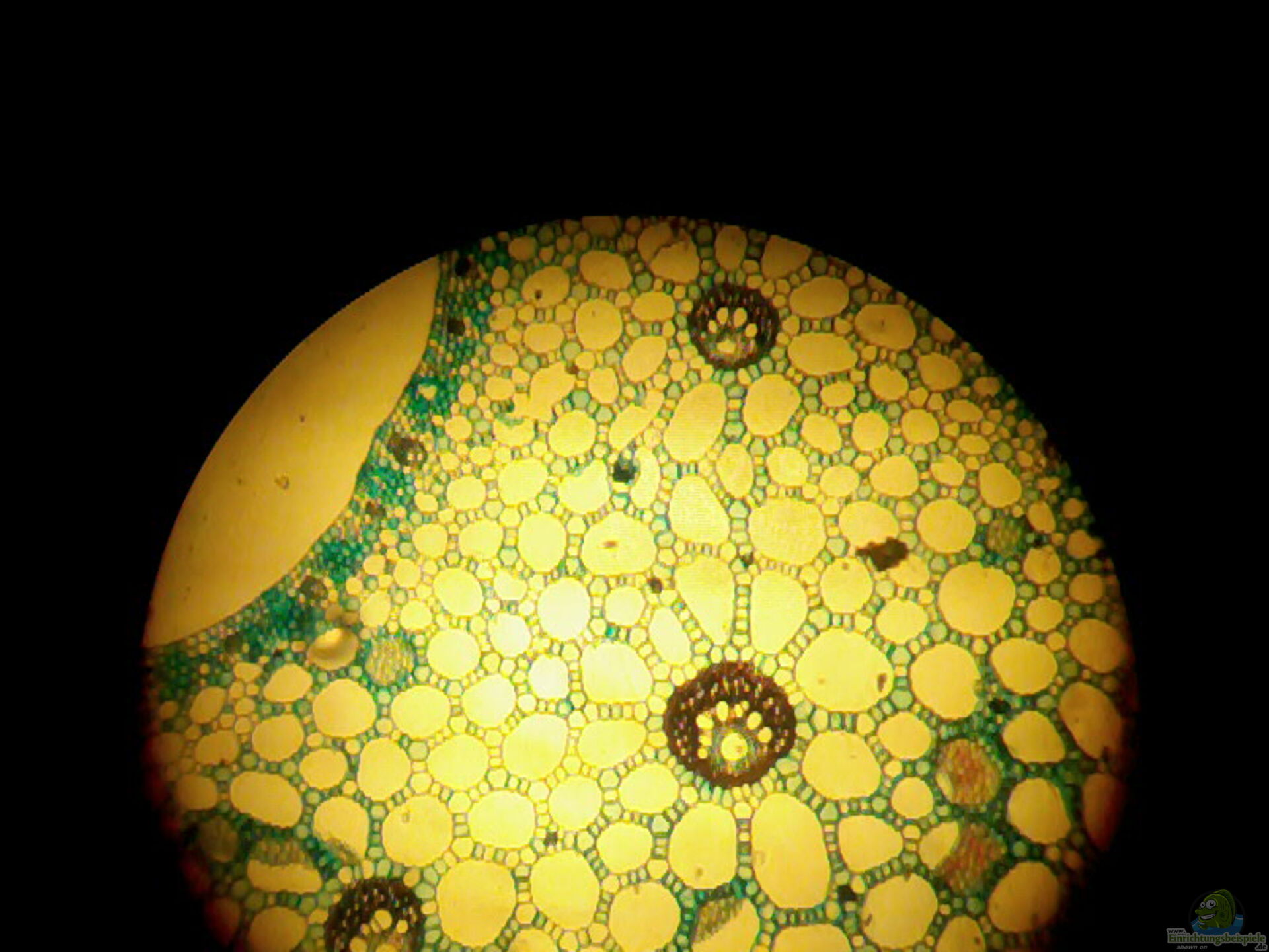 Das Aerenchym ist ein schwammartiges Gewebe mit großen, luftgefüllten Hohlräumen, das in Blättern, Stängeln und teilweise auch in den Rhizomen von Seerosen vorkommt. Diese Luftkammern dienen zunächst einmal der Auftriebssicherung: Sie sorgen dafür, dass die Blätter und Blüten an der Wasseroberfläche bleiben. So kann die Pflanze effizient Photosynthese betreiben und ihre Blüten werden für Insekten als Bestäuber gut sichtbar.
