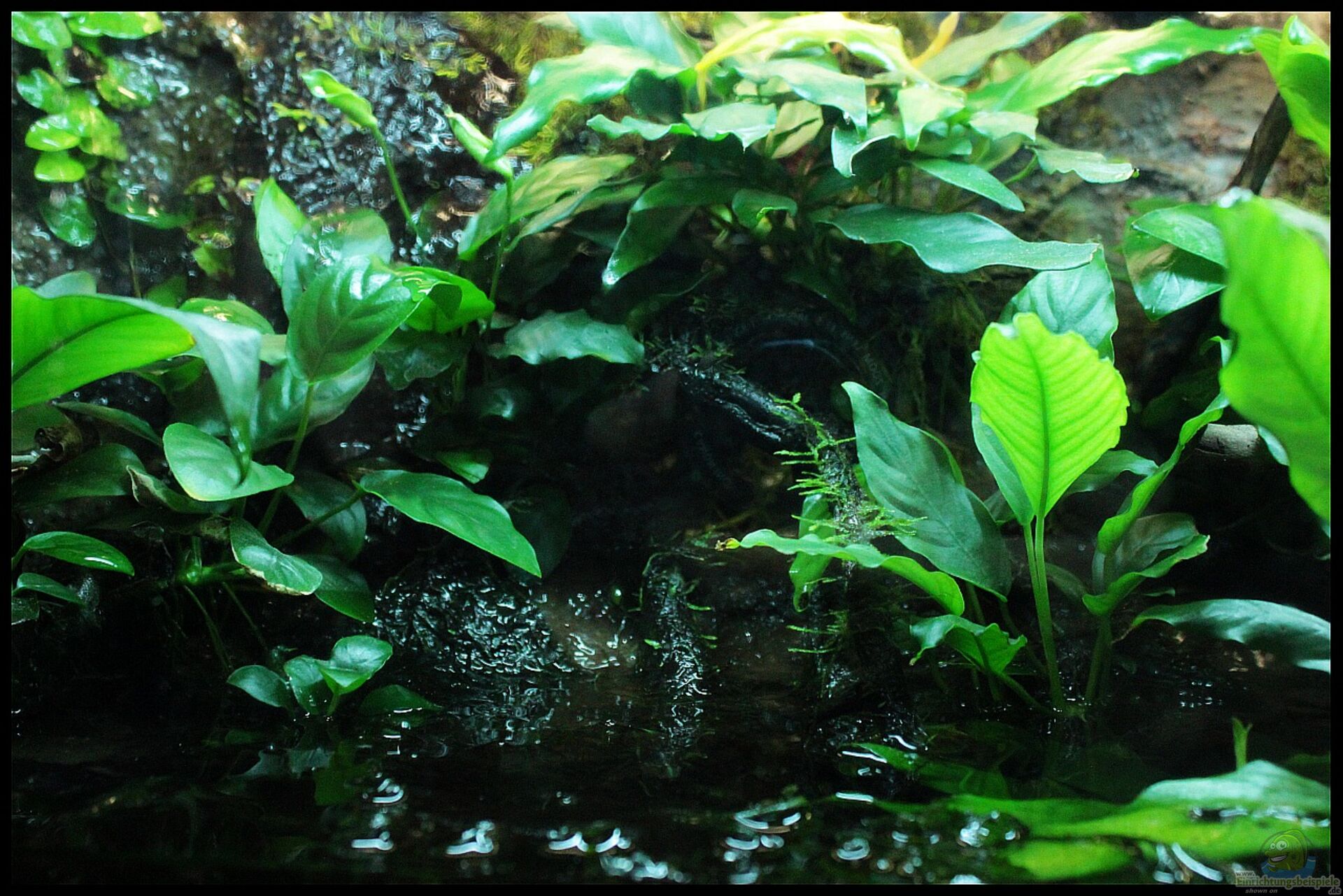 Ein Riparium kann schon in kleinen Aquarien von 54 Litern gut umgesetzt werden, wichtig ist das ein genügend gro??er Landteil der nicht dauernass sein sollte seinen Platz findet, nach oben sind hier natürlich keine Grenzen gesetzt.