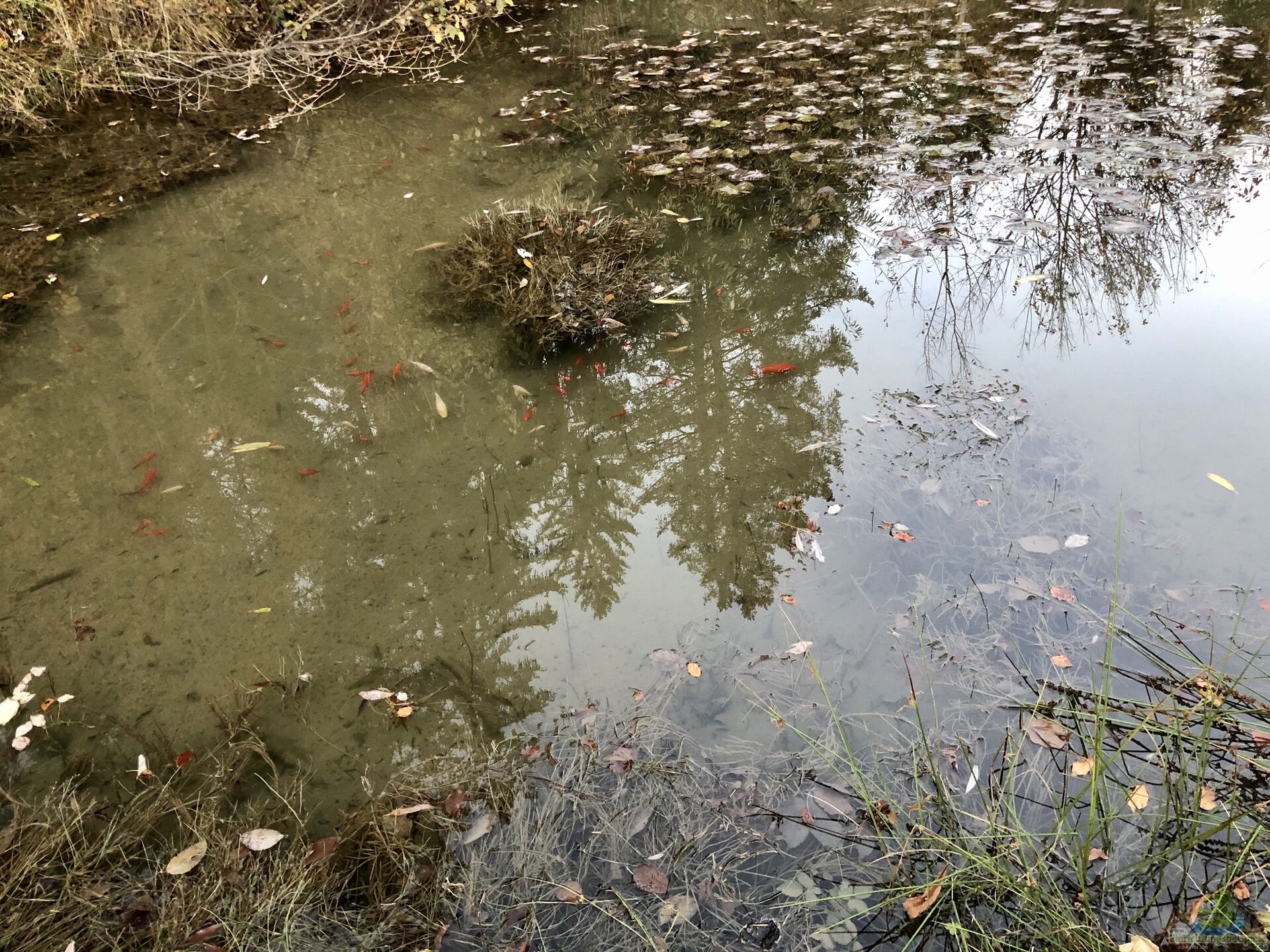 Letztens bekam ich einen Anruf von meiner Aquarien-Vereins-Kollegin, dass sie vor einiger Zeit (Ende Oktober 2020) am Wochenende im Wald spazieren war und an einem Teich vorbeikam, in dem unzählige Fische, die offensichtlich nicht in unsere ursprüngliche Natur gehören sah. Es würde sich um Goldfische handeln und es sei extra ein Schild an dem Naturteich angebracht worden, dass das Aussetzen von Fischen verboten sei???