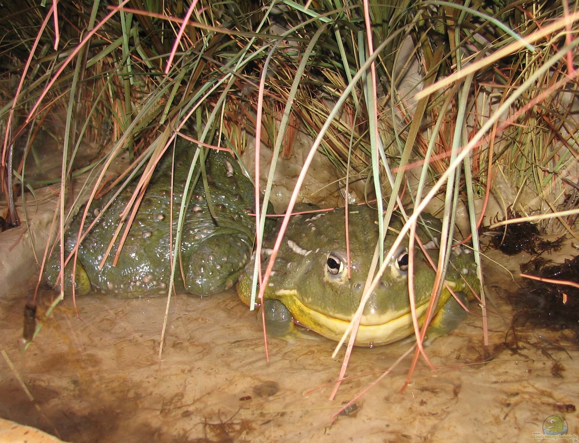 Ein Riesenochsenfrosch braucht richtig Platz. Ein einzelnes Männchen sollte nicht in einem kleinen Becken untergebracht werden. Sinnvoll ist ein Terrarium, das mindestens in der Größenordnung von etwa 120×60×60 cm liegt, gerne mehr. Ausschlaggebend ist, dass er einen stabilen Bodenbereich zum Eingraben hat und gleichzeitig einen großen, flachen Wasserteil, der ihm das Einweichen ermöglicht.