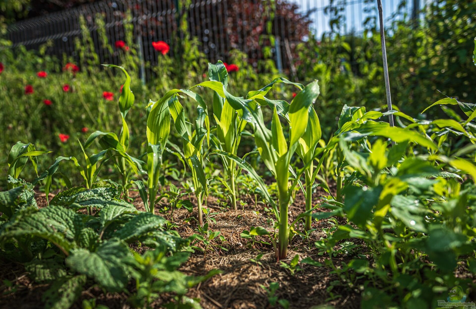 Regelmäßige Bewässerung, abgestimmt auf die jeweiligen Pflanzenarten, ist essenziell. Tropfbewässerung oder Gießkanne mit sanftem Strahl schützt junge Pflanzen. Mulchen reduziert Wasserverlust und Unkraut. Zudem ist eine regelmäßige Kontrolle auf Schädlinge und Krankheiten wichtig, wobei biologische Methoden wie Nützlinge, Neemöl oder Mischkulturen umweltfreundlichere Lösungen darstellen.