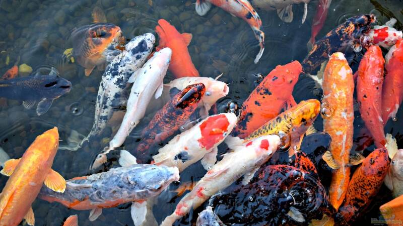 - Hochwertiges Koi-Futter mit hohem Proteinanteil, speziell auf die Jahreszeit abgestimmt (Sommerfutter, Winterfutter, etc.)