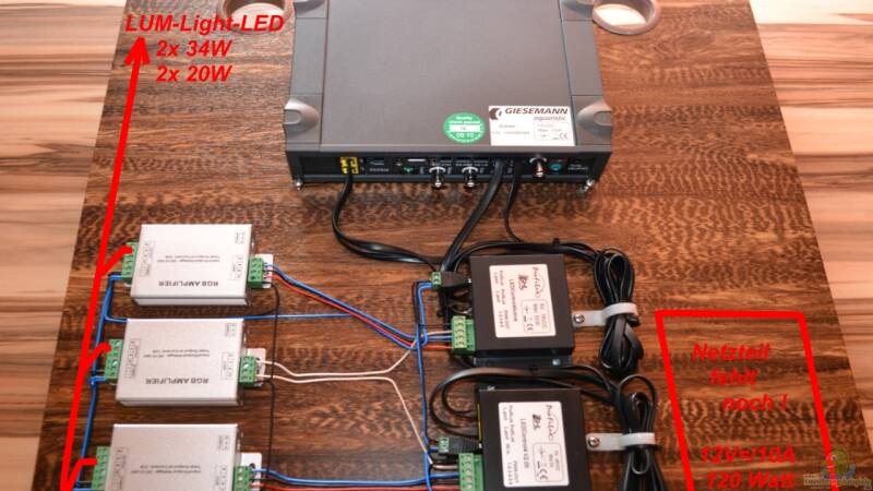 Foto7: Die ferig verdrahtete Lichtsteuerung, die Kabel der 4 Lampen und das 12V-Netzteil fehlen noch.