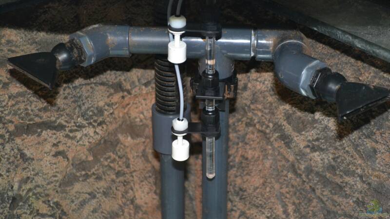 Foto: 13: Die beiden eingebauten GHL-Schwimmer für den Wasserwechsel, dahinter der Ablauf.