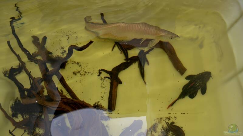 Das Becken muss bevor man die Pfleglinge herausbekommt erst einmal mehr oder weniger leergeräumt werden, weil die Deko ja ein wenig verworren aufgebaut ist. Wenn dieses erledigt ist, stellt sich die Frage wohin in dieser Zeit mit den Tieren???