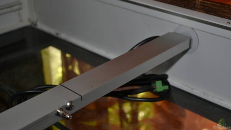 Und da bei meinen Fische welche dabei sind die sehr gut springen musste das Ganze möglichst wieder einfach zu verschlie??en sein. Die alten ausgesägten Plastikteile wurden mittels eines Edelstahl-Scharniers und eines Griffs/Anschlag aus Plastik und einiger Edelstahlschrauben wieder befestigt. Passende Fotos dazu könnt Ihr Unten sehen.