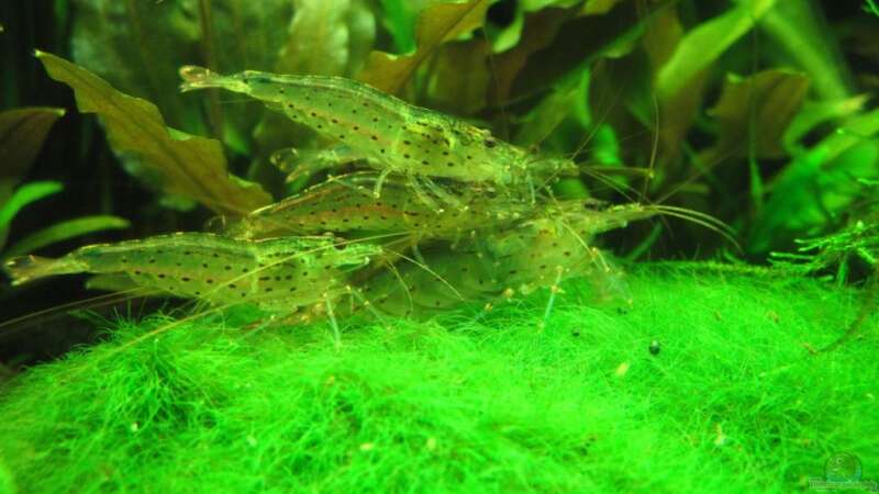 Zum Futterangebot bleibt anzumerken das die Amano ein Allesfresser ist d.h. neben Algen und Aufwuchs werden Flocken/Granulate ebenso genommen wie Gemüse z.b. Gurke, Zucchini und auch hin und wieder Frostfutter , auch ein toter Fisch oder Artgenosse wird nicht verschmäht.