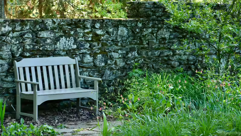 - Naturnaher Garten: Schlichte, unbehandelte Holzbänke, eventuell mit Moos-Patina.
