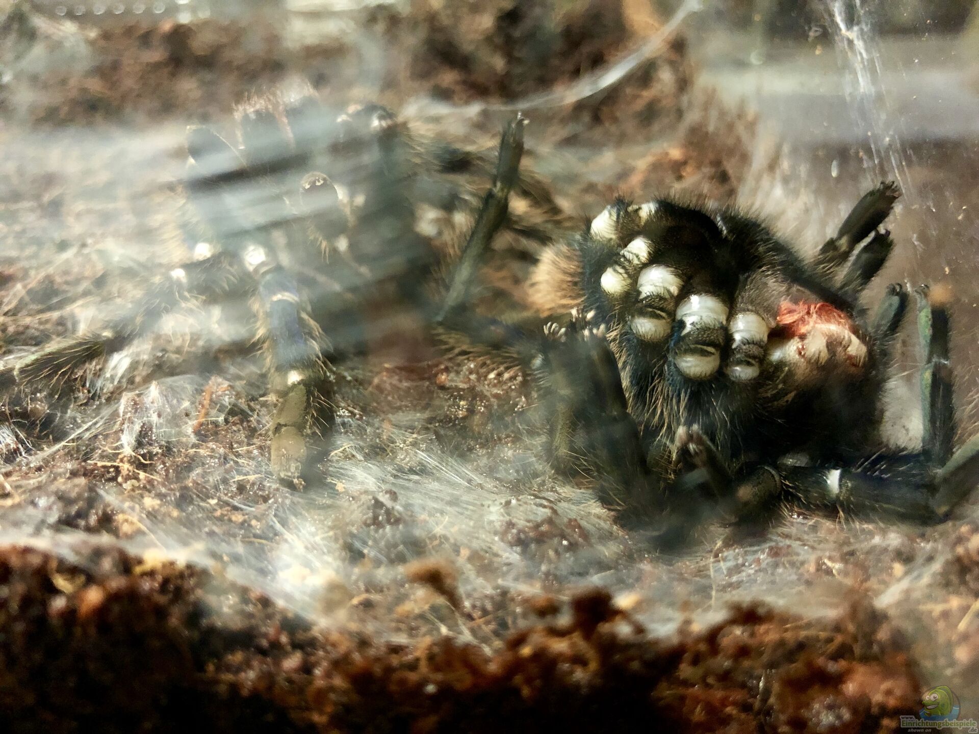 Nun ist es das Beste, wenn man die Vogelspinne in den nächsten Tagen so wenig als möglich stört und lediglich auf die Feuchtigkeit im Terrarium achtet. Die Häutung einer Vogelspinne ist irre anstrengend und der noch weiche Körper ist nicht wirklich zur Flucht geeignet. Also darf man die Spinne auch nicht erschrecken.