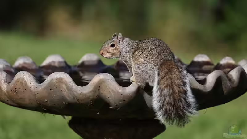 Eichhörnchen halten sich gern in höheren Etagen des Gartens auf. Eine Schale mit frischem Wasser auf einem Zaun, Ast oder sogar einem Balkon wird gerne angenommen.