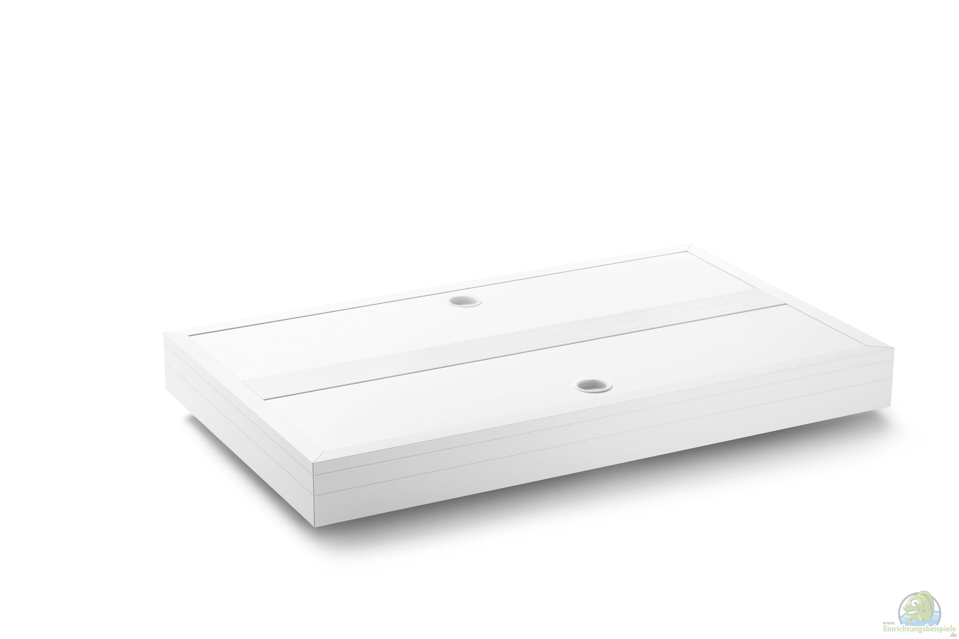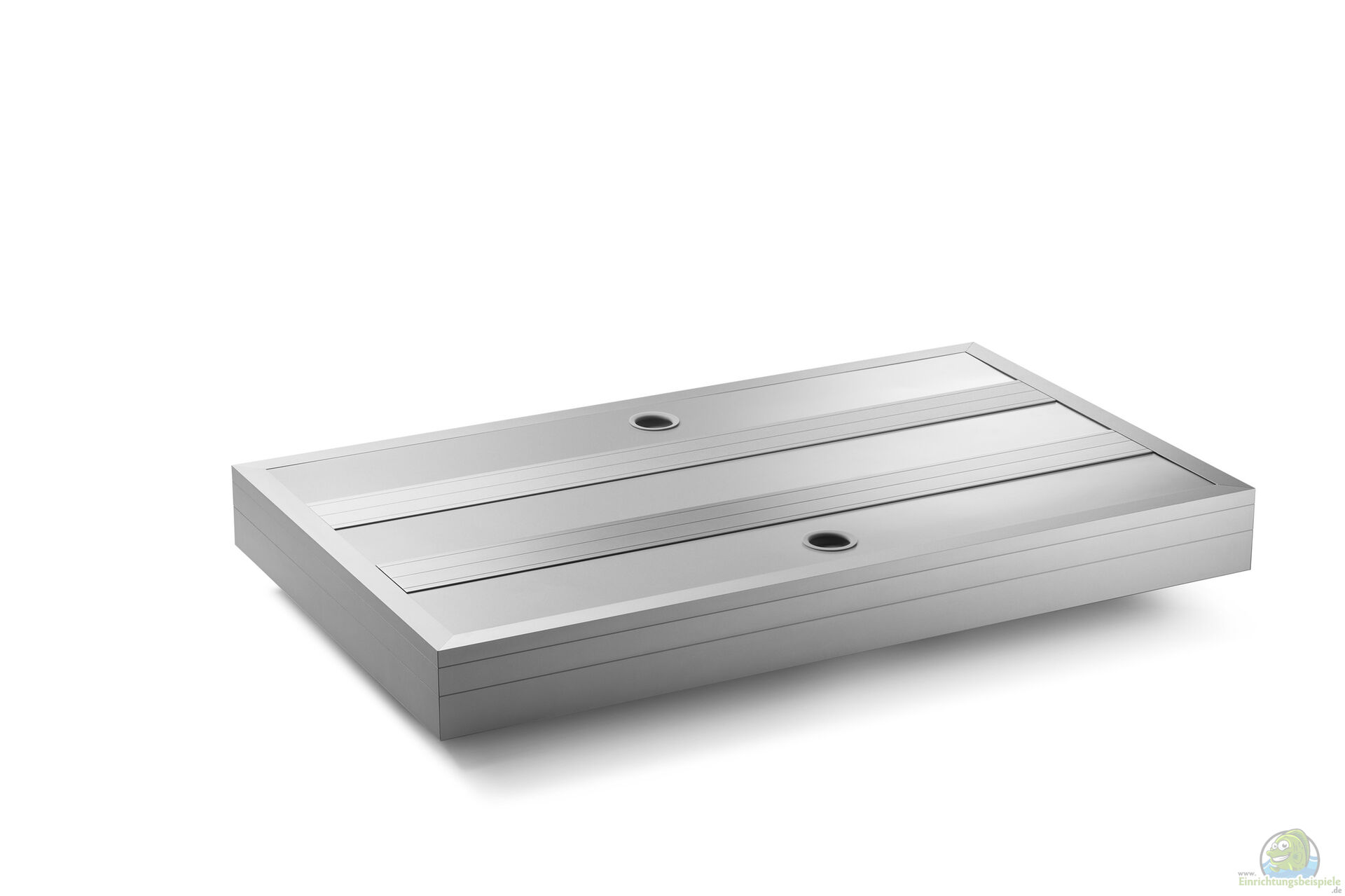 Das Design. Schlank. Funktional. Nicht nur optisch zeigt die Abdeckung eine klare Kante. Die durchdachten Rahmenprofile ermöglichen komfortable Deckelgrö??en und somit einen nahezu ungehinderten Zugriff auf das Aquarium. Die integrierte XL Schmutz- und Wasserstandsblende (-38mm zur Glasoberkante) sorgt umlaufend für ein sauberes und ungestörtes Blickfeld. Das Temperaturoptimierte Lichtprofil nimmt Abwärme ideal auf.