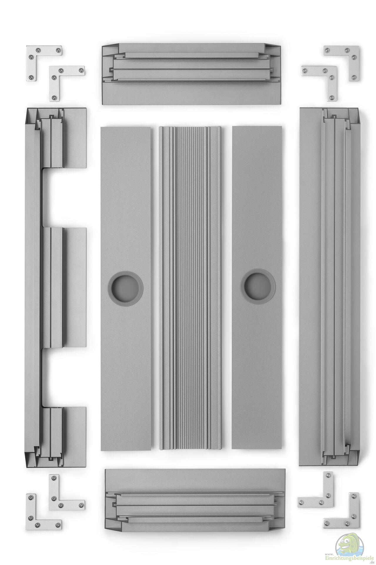 Die Auswahl. Flexibel. Variantenreich. Weit mehr als 2000 mögliche Kombinationen machen diese Abdeckung für quadratische und rechteckige Aquarien von 30x30 bis 300x100cm zur ersten Wahl. Je nach Auswahl ist der Technikausschnitt (für Kabel, Schläuche, etc.) an Längsseite (Standard) oder Breitseite (Raumteiler), bzw. auch komplett ohne (Technikschacht innen) möglich.