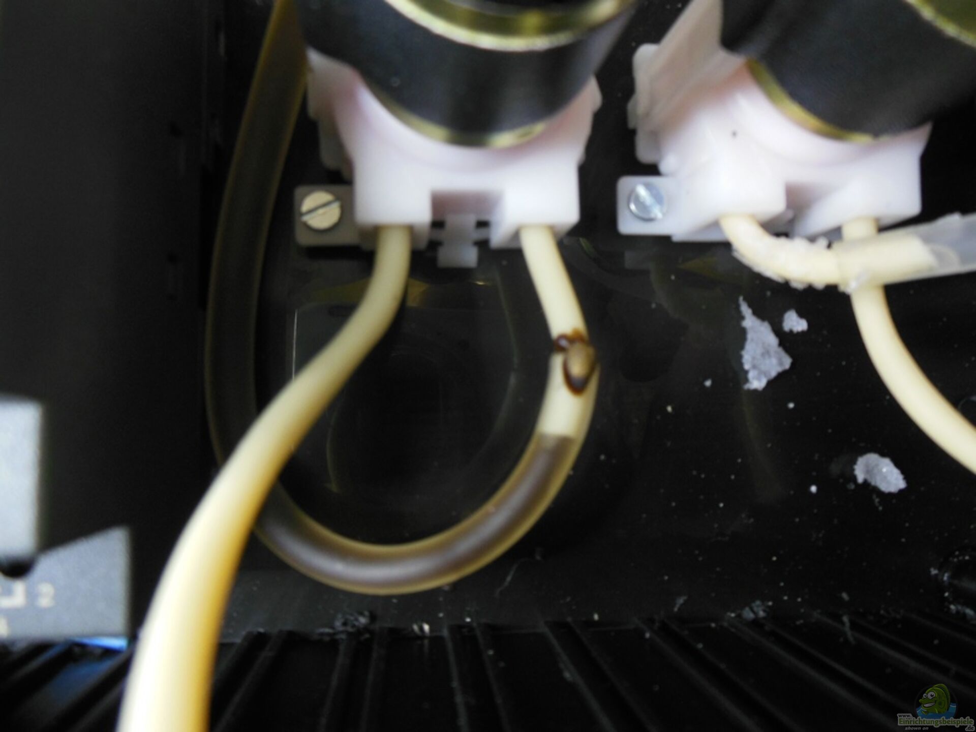 Erwähnen sollte ich vielleicht noch das die beiden Schläuche die ins Becken führen nicht ins Wasser eingetaucht werden sollten! Nicht das sich mal eines Tages das Becken über diese Schläuche entleert! Ich habe die Schlauchenden einfach mit Kabelbindern am Leuchtbalken fixiert, so kann der Dünger von oben in das Wasser tropfen...