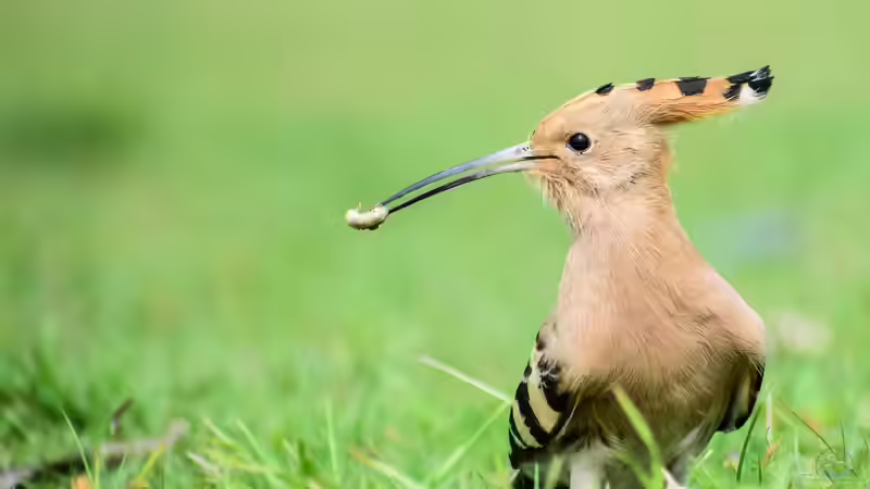Entscheidend ist vor allem das Nahrungsangebot: Der Wiedehopf lebt fast ausschließlich von größeren Insekten, die er mit seinem langen Schnabel geschickt aus dem Boden zieht. Engerlinge, Käferlarven, Grillen oder Schmetterlingsraupen stehen ganz oben auf dem Speiseplan. Auch Regenwürmer und Spinnen werden nicht verschmäht. Bei der Nahrungssuche schreitet er langsam über den Boden und pickt gezielt zu – ein Verhalten, das ihn gut von anderen Wiesenbewohnern unterscheidet.